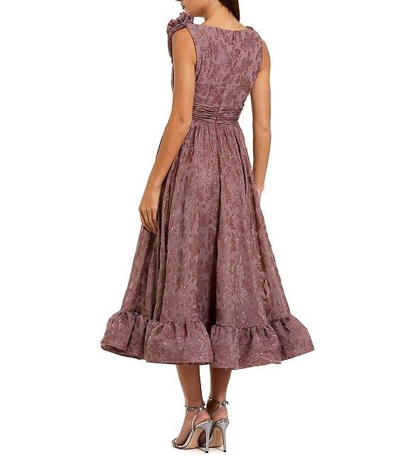 Mac Duggal Burnout Chiffon Sleeveless Cowl Neck Midi Dress
