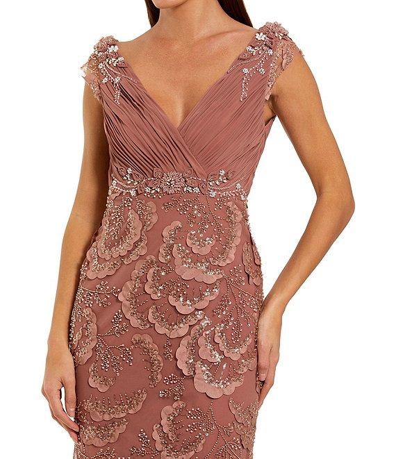 Mac Duggal Chiffon V-Neck Embroidered Gown