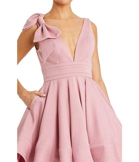 Mac Duggal Crepe Plunge V-Neck Sleeveless Bow Fit & Flare Mini Dress