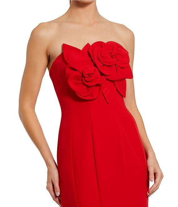 Mac Duggal Crepe Strapless 3D Flower Pattern Mermaid Gown
