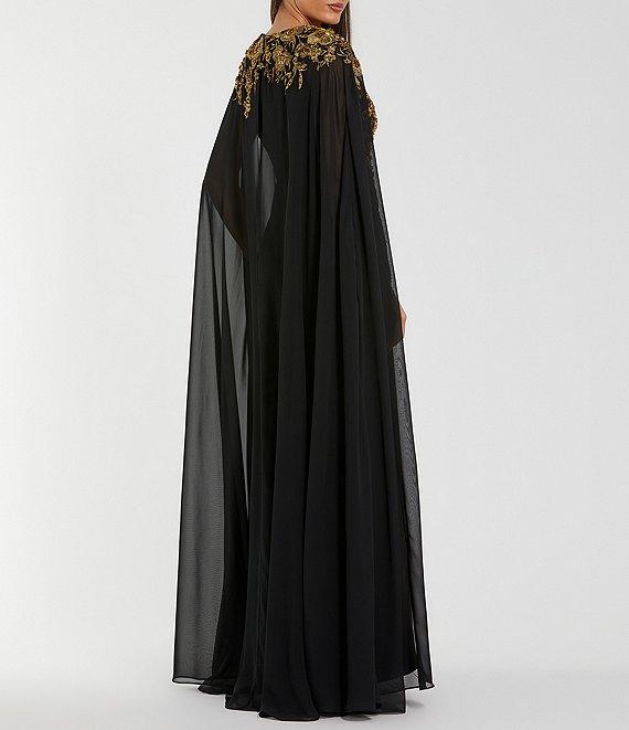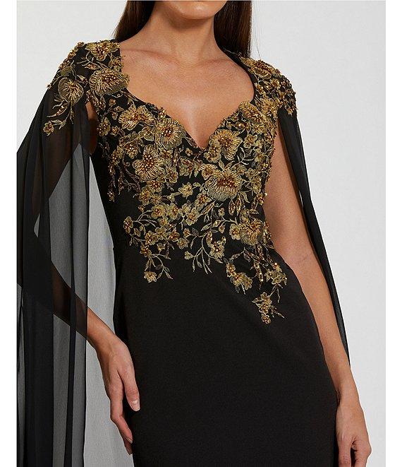 Mac Duggal Embellished Crepe Gown with Chiffon Cape Sleeves