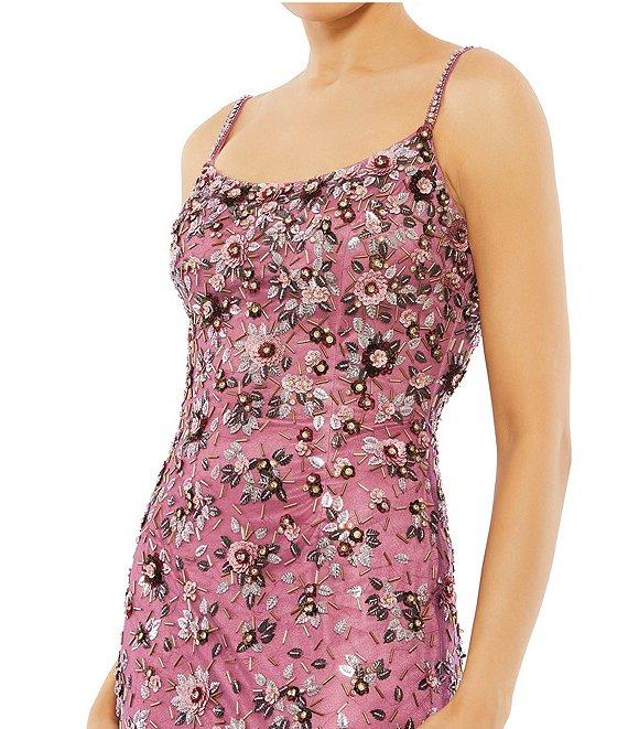 Mac Duggal Embellished Floral Beaded Open Back Detail Scoop Neck Sleeveless Gown