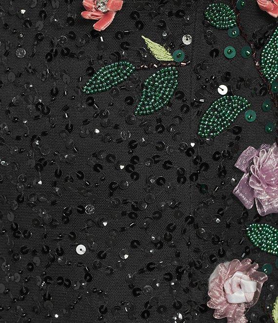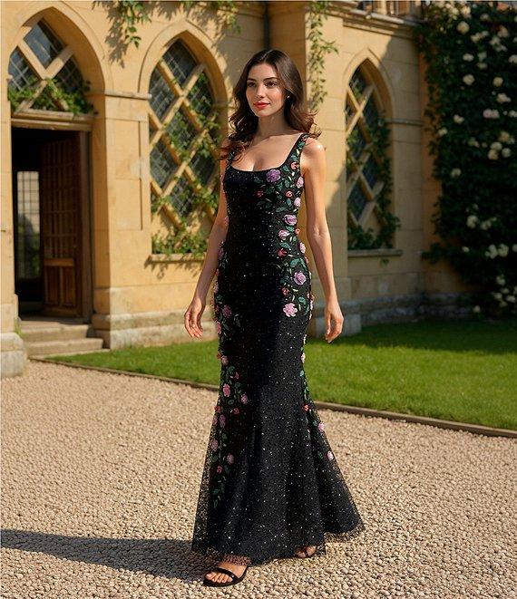 Mac Duggal Embellished Mesh Square Neck Sleeveless 3D Flower Gown