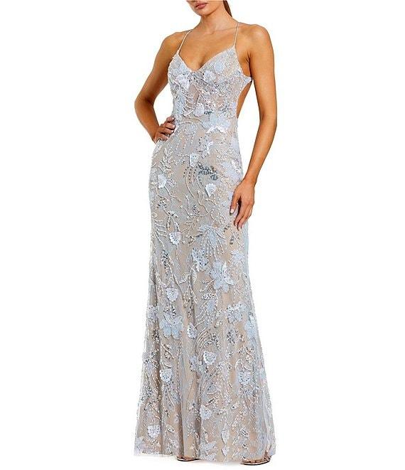 Mac Duggal Floral Embroidered Sleeveless Open Back Long Gown