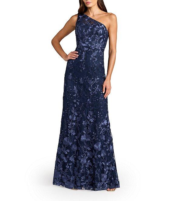 Mac Duggal Floral Lace Embroidered One Shoulder Sleeveless Gown