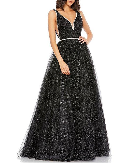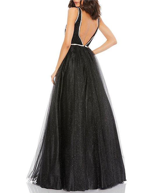 Mac Duggal Glitter V-Neck Sleeveless Ball Gown