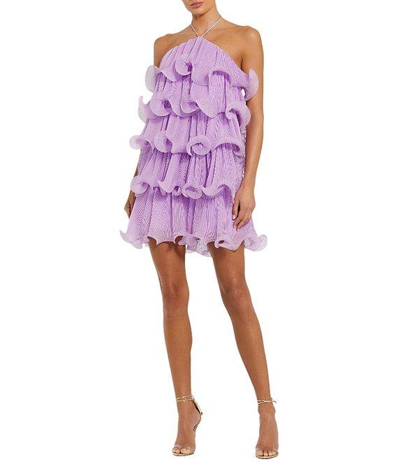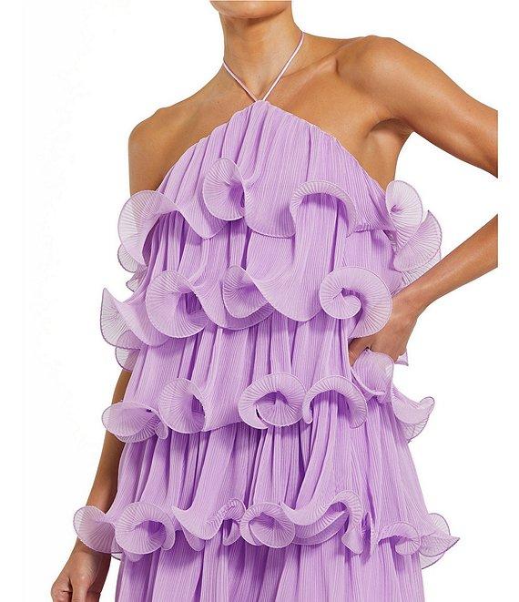 Mac Duggal Halter Neck Tiered Crinkle Chiffon Shift Dress