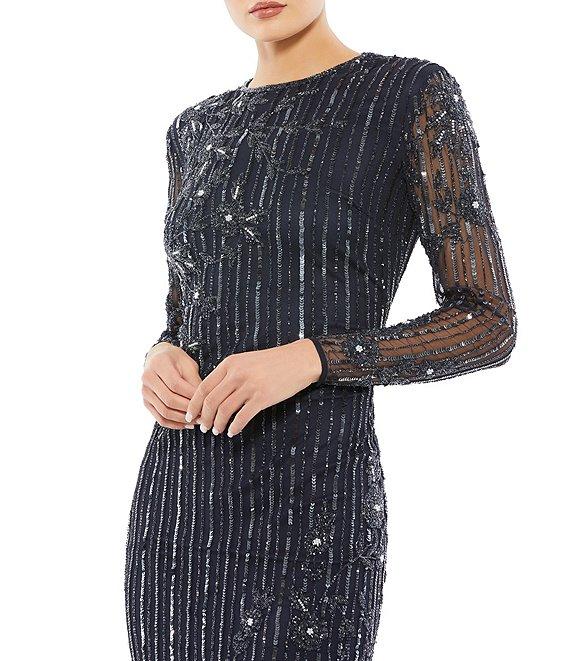 Mac Duggal Illusion Long Sleeve Sequin Column Gown