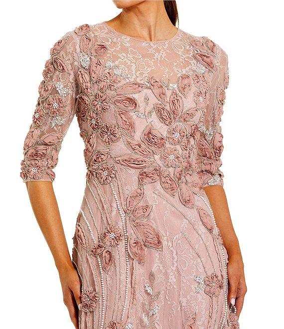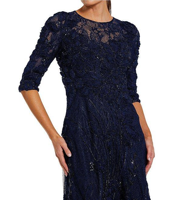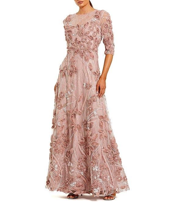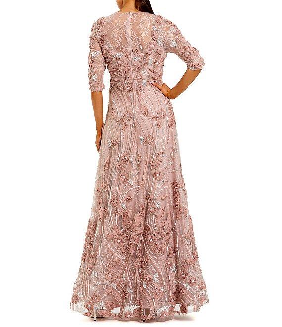 Mac Duggal Illusion Neck Embroidered A Line Gown