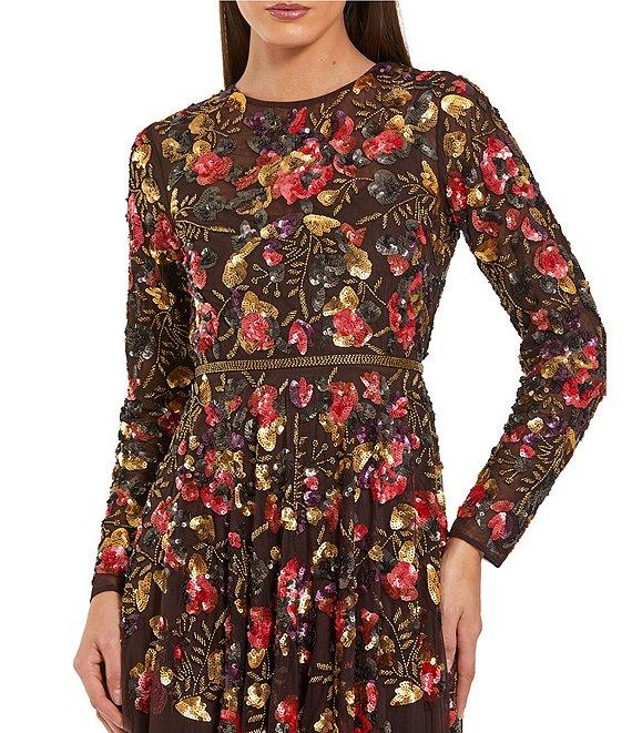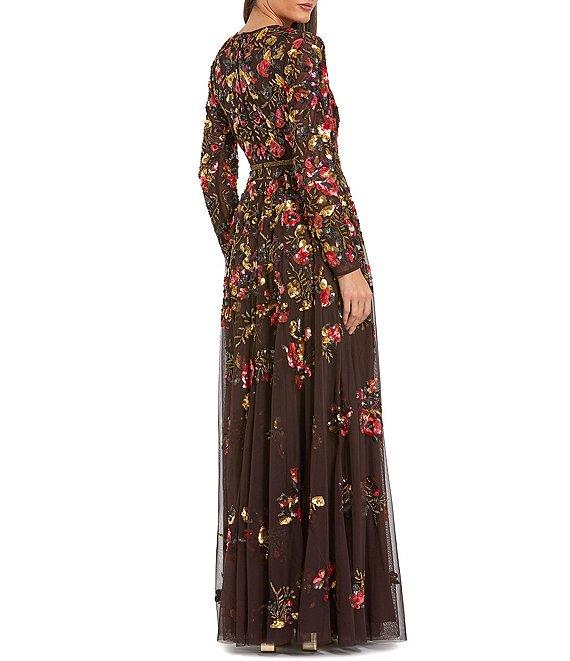 Mac Duggal Long Sleeve Beaded Floral Gown