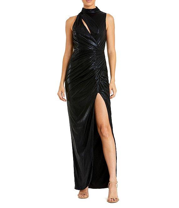 Mac Duggal Metallic Mock Neck Sleeveless Cutout Gown