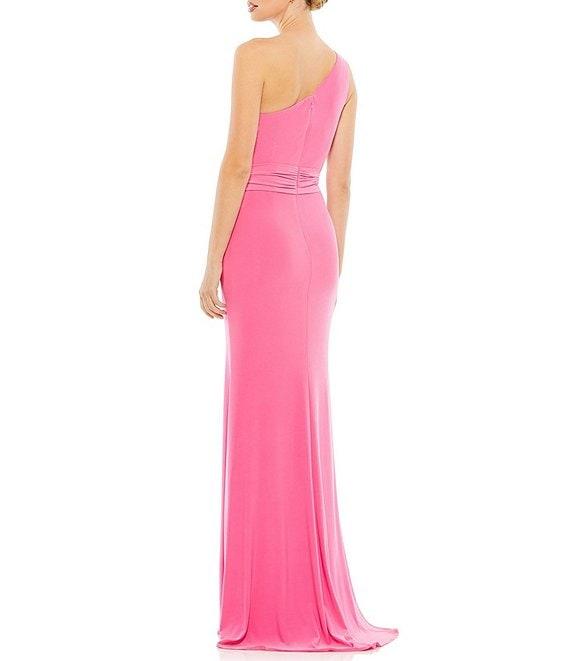 Mac Duggal One Shoulder Belted Jersey Trumpet Gown