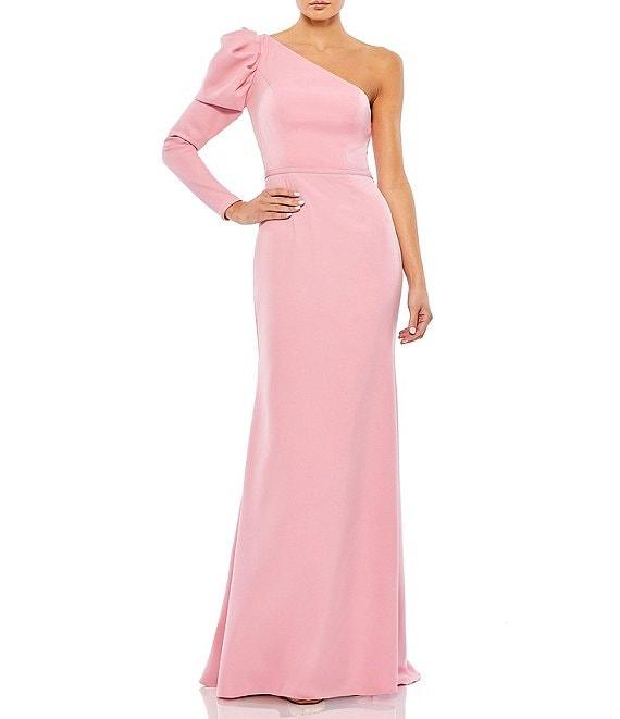 Mac Duggal One Sleeve Sheath Crepe Mermaid Gown
