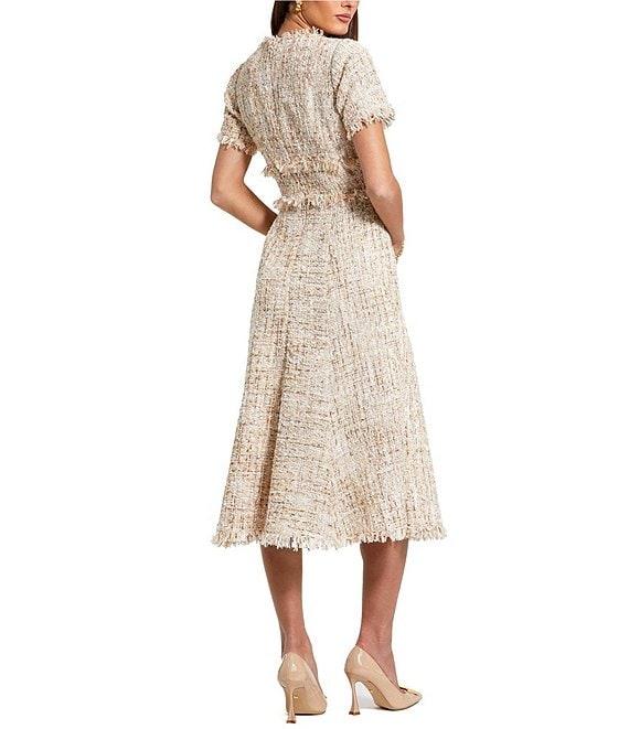 Mac Duggal Petite Boucle Tweed Short Sleeve A-Line Midi Dress