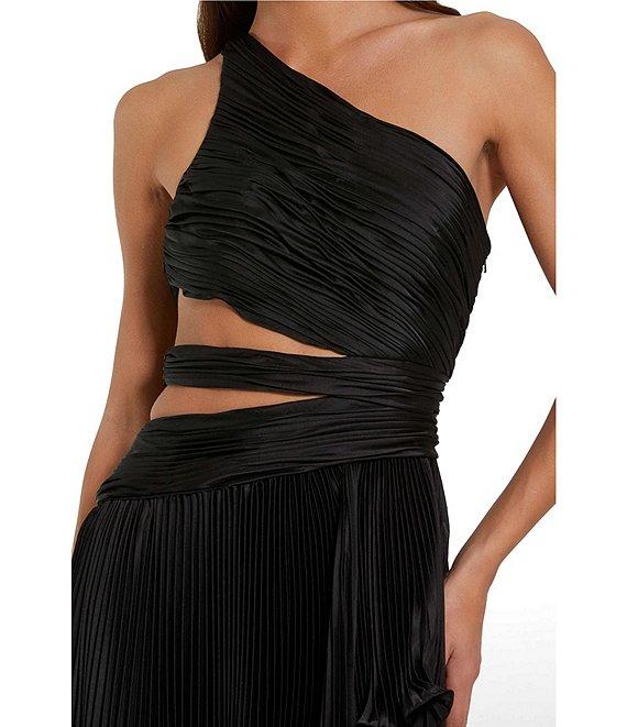 Mac Duggal Pleated Charmeuse One Shoulder Sleeveless Side Cut-Out Front Slit Gown