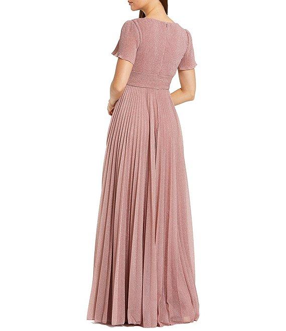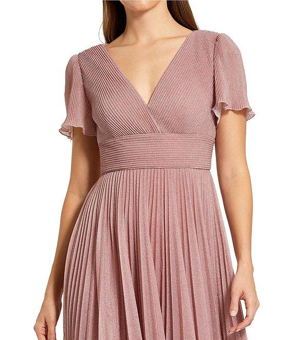 Mac Duggal Pleated Metallic Flutter Sleeve A Line Gown