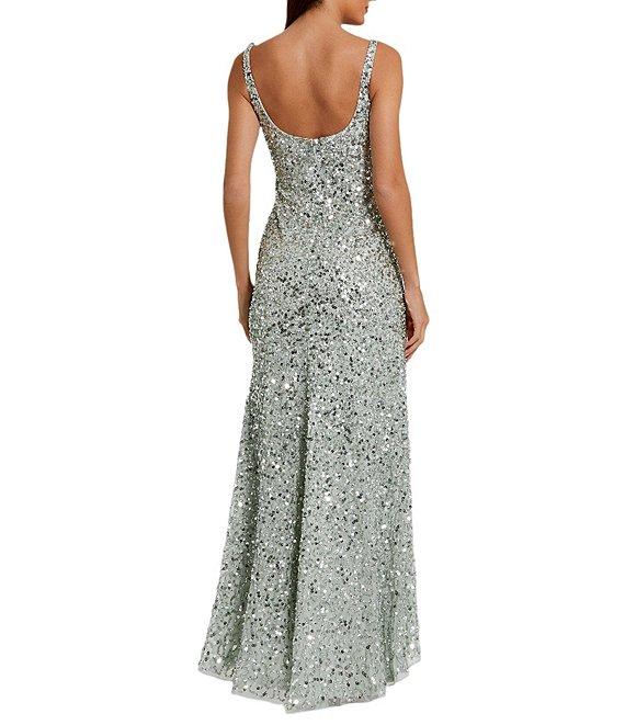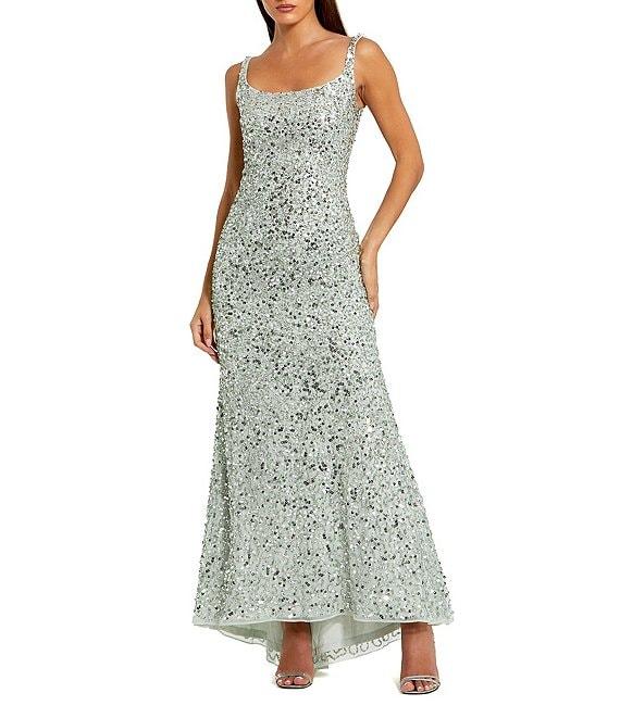 Mac Duggal Scoop Neck Sequined Sheath Gown