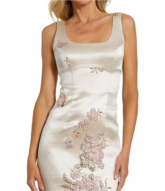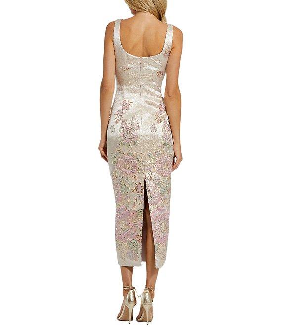 Mac Duggal Scoop Neck Sleeveless Floral Brocade Sheath Midi Dress