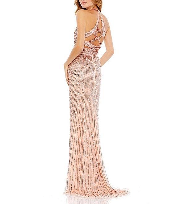 From Mac Duggal, this gown features:A-line silhouetteSequin fabricationV-necklineSleevelessCut out backCut out sidesZip back closureLinedApprox. 35" length PolyesterHand wash coldImported.
