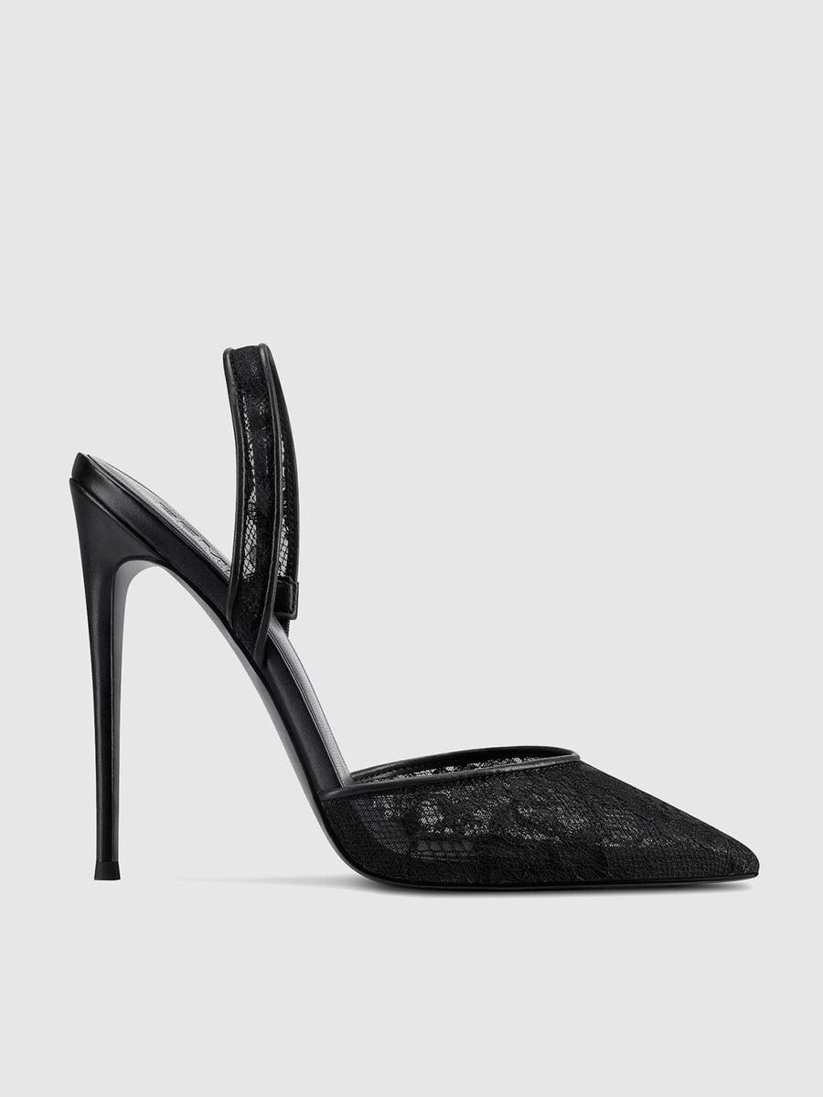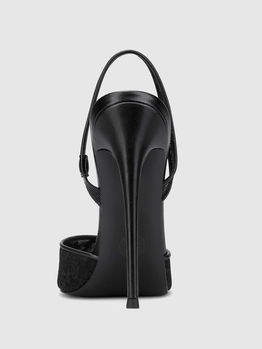 The Macallan Slingback sandals feature spiked stiletto heels and delicate lace slingback straps, perfectly complementing the laced vamp and pointed toebox for a sleek and sophisticated look.Vegan upperVegan InsoleVegan outsoleClosed-Pointed toeSlingback strap HandmadeDesigned in LASelf-covered stiletto heel, 4.75" (120mm)