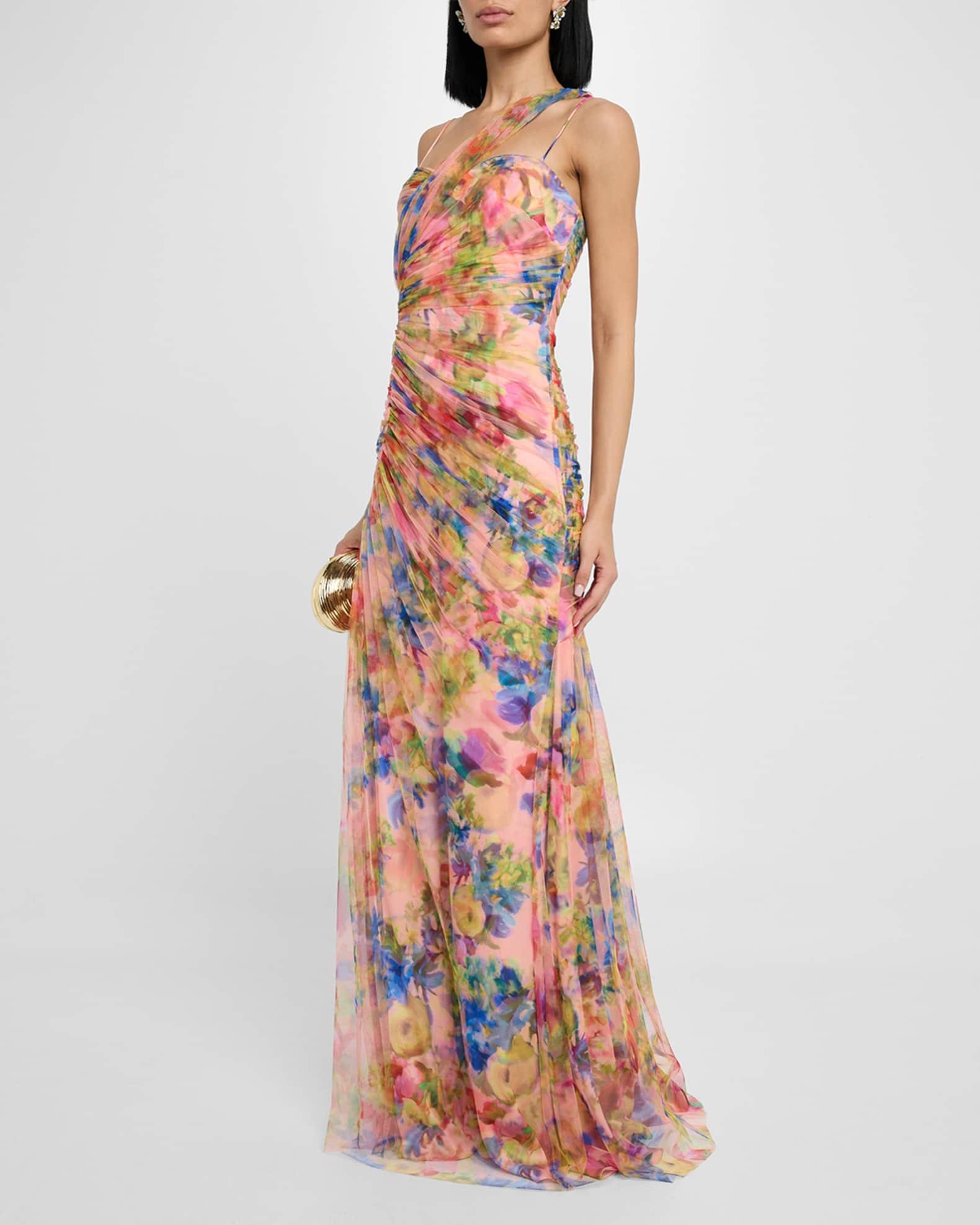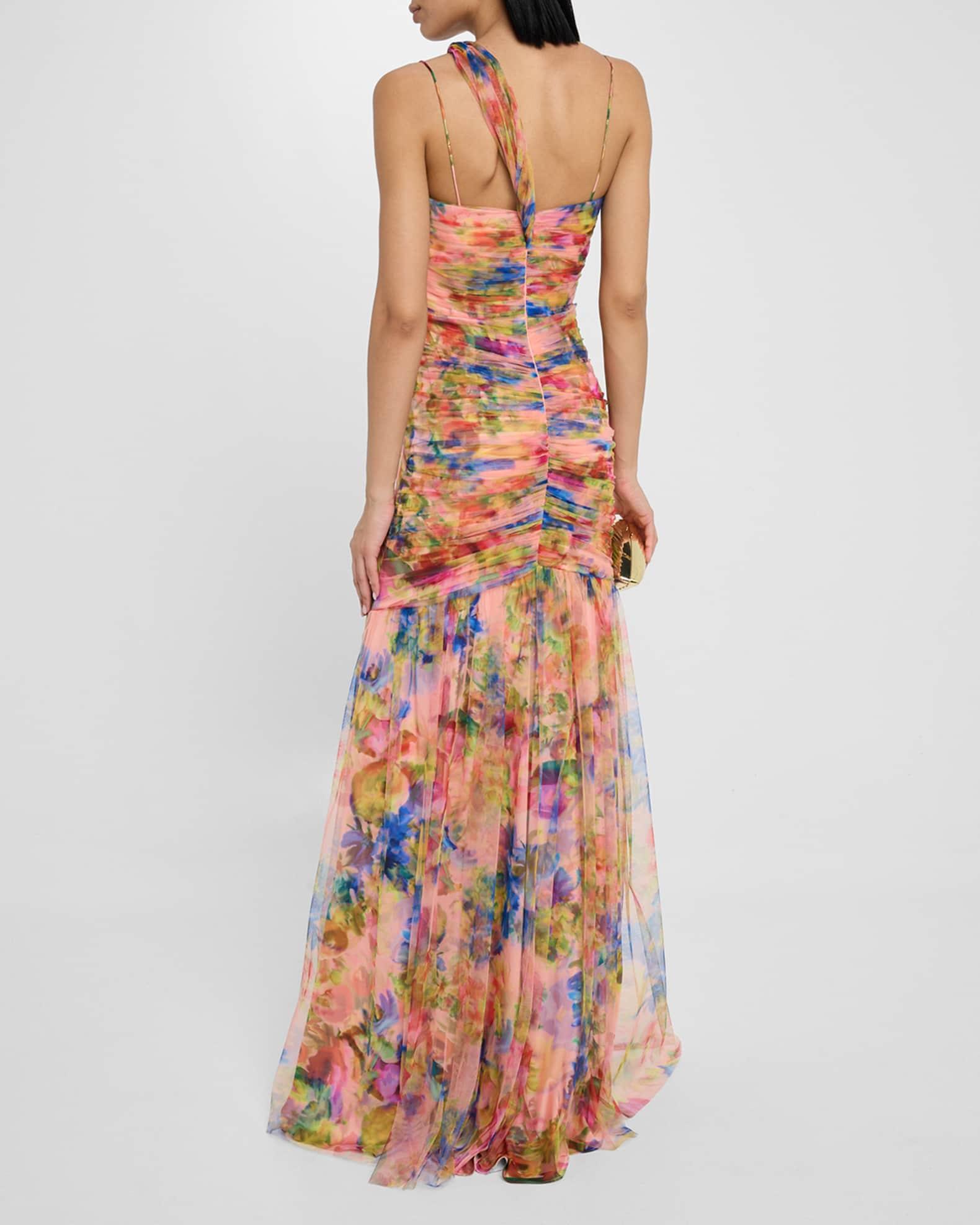 Macie Ruched Floral-Print Tulle Gown