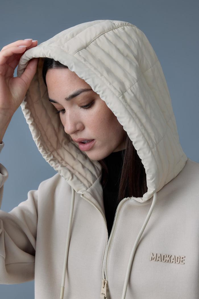 Stay cozy and stylish in the Mackage Cruz Zip-Up Hoodie. The bold textured style of vertical quilted jersey brings a modern twist to this classic relaxed fit. Plus, the organic cotton lining offers added comfort for both indoor and outdoor activities. Upgrade your wardrobe with this timeless and luxurious piece.