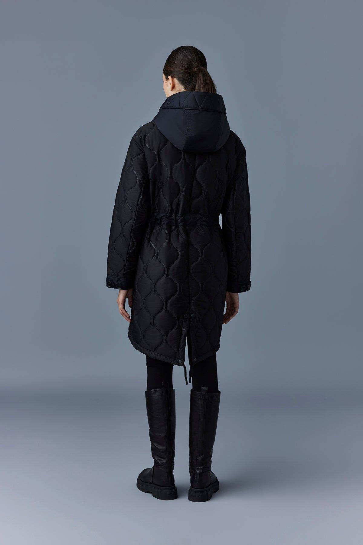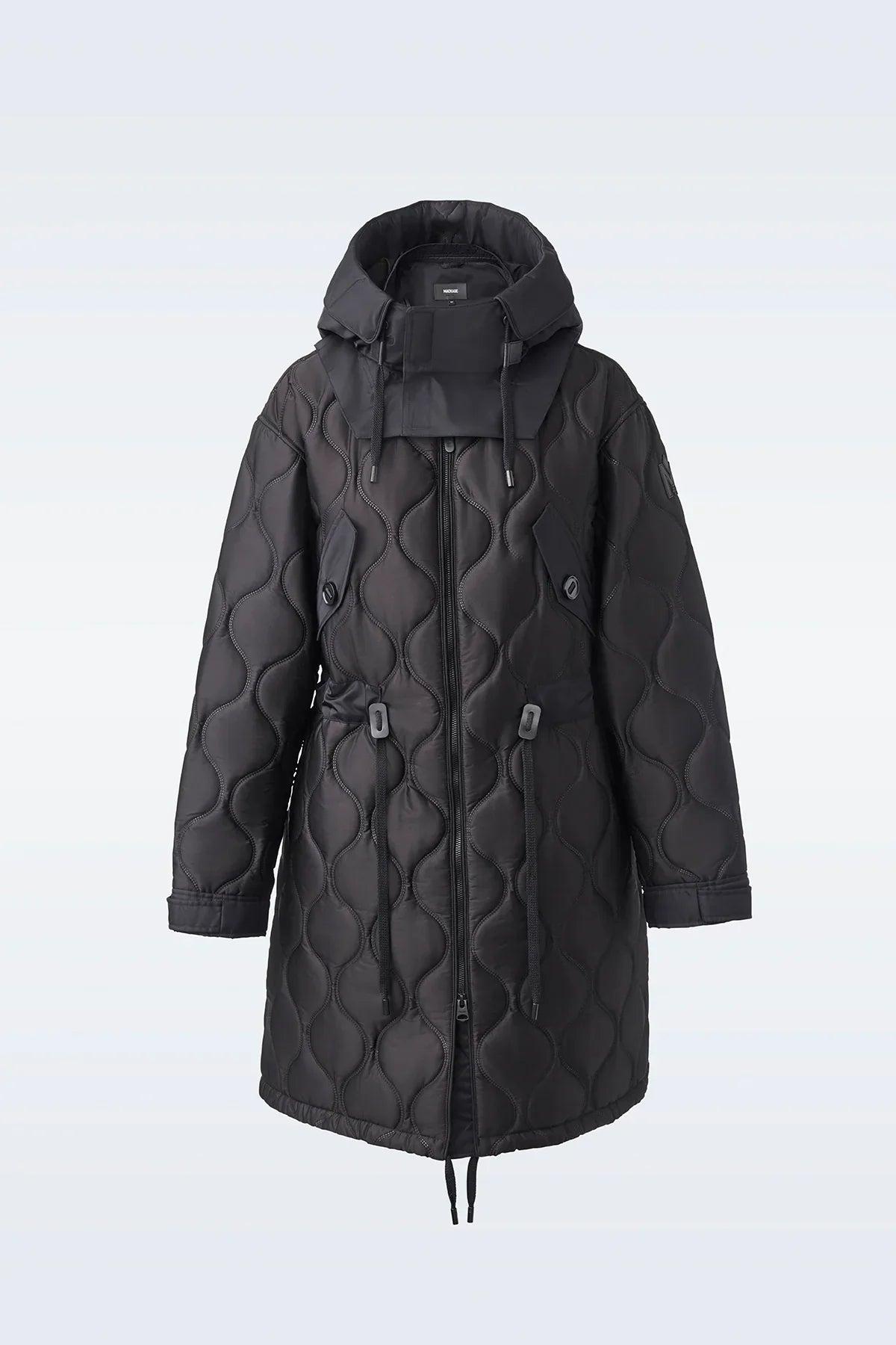 This Mackage Kula Heritage Quilted Long Coat is the perfect way to stay both warm and stylish. Its unique heat stamp quilting and 100% recycled nylon fabric will provide comfort and insulation in all climates. This coat also features adjustable drawcord and a storm visor hood with a removable brim to maximize protection from the elements. With a center front zipper closure, two patch interior pockets and an M logo appliqué, this coat is perfect for everyday use.