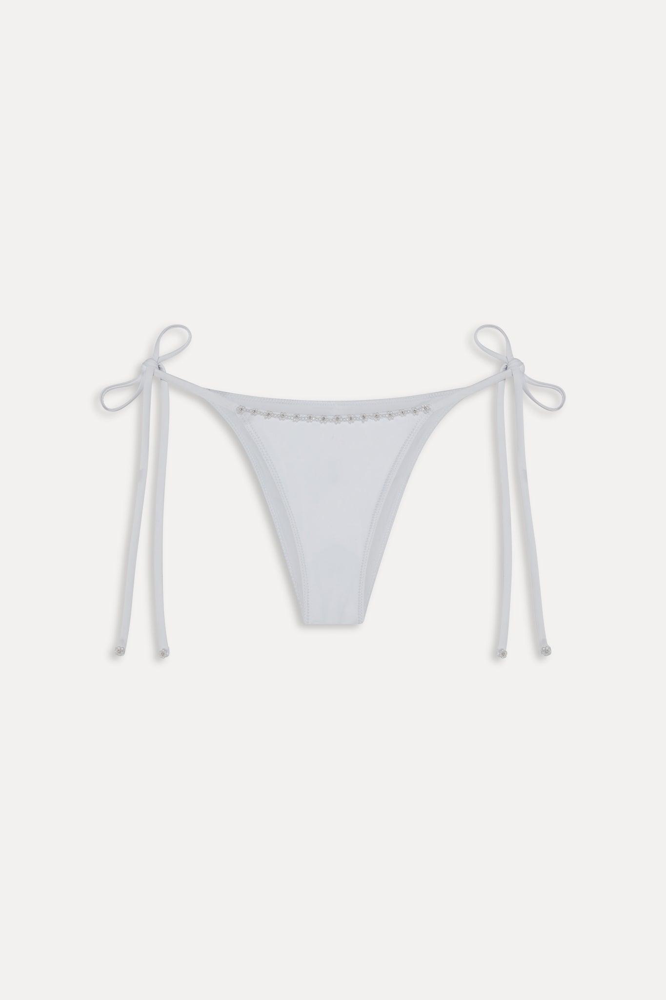 This Black Friday Exclusive bikini bottom is a timeless staple. Details Low rise bikini bottom Special beaded accents Cheeky coverage Adjustable string ties