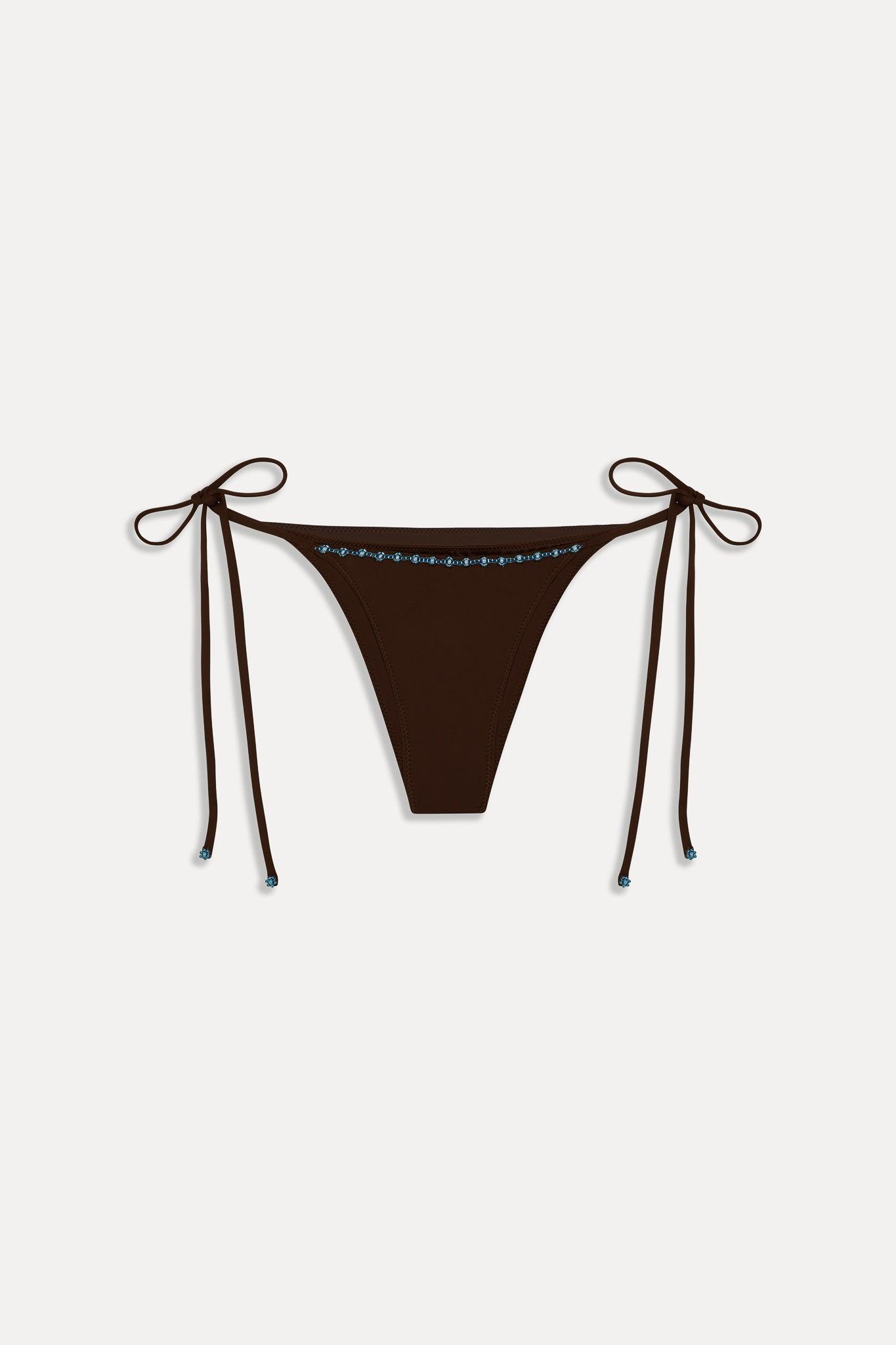 The Mackenzie bikini bottom is a timeless staple perfect for tropical vacations. This bikini bottom ensures minimal tan lines and a flattering fit. Details Low rise style Cheeky coverage String ties sit mid-hip Signature soft swim fabric Special floral beaded details