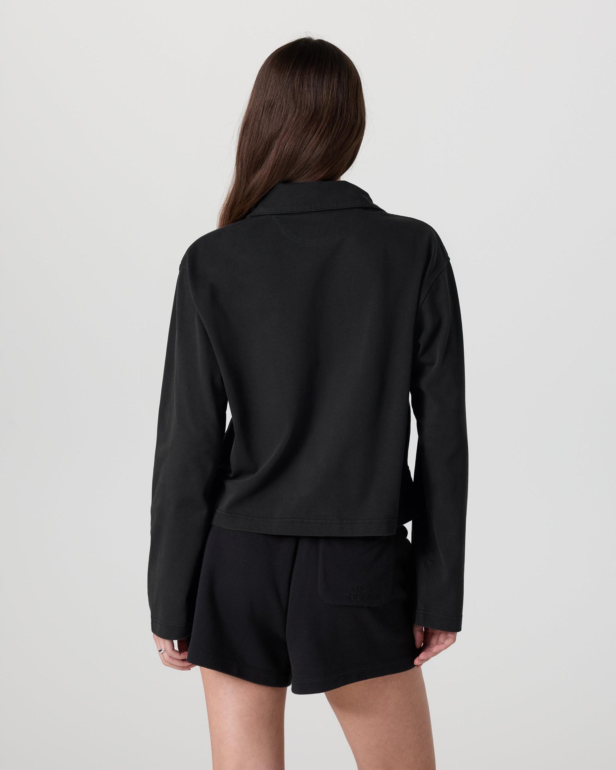 Taking inspiration from classic rugby polos, this layering piece blends neutral elegance with sporty style. Shop the Mackenzie Rugby Polo in Washed Black.