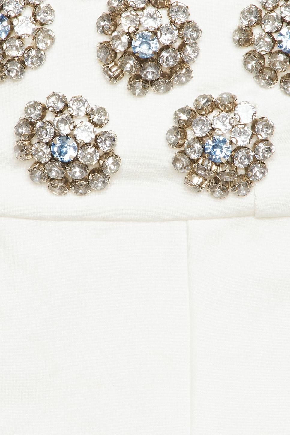69% viscose, 28% nylon, 3% elastane. Dry clean only. Unlined. Hidden back zip closure. Bejeweled design at bust. Midweight ponte fabric. Made in India. Revolve Style No. MALR-WD1571. Manufacturer Style No. MJD1167 F24.
