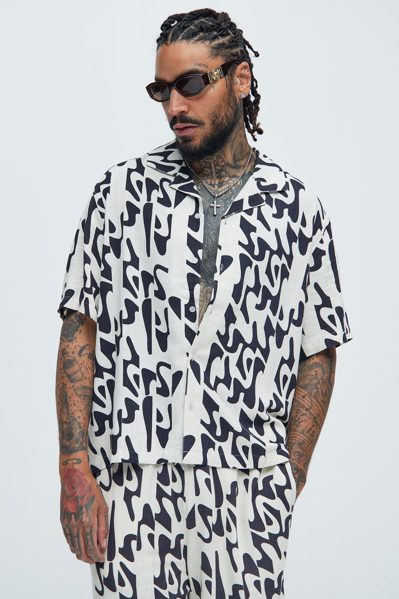 Available In Black/combo. Fold Down Collar Front Button Closure Short Sleeve 85% Rayon, 15% Linen Disclaimer: Due To The Printing Process A Difference In Saturation May Occur. Each Garment Is Unique. Print Placement Will Vary. Imported California Proposition 65WARNING: Cancer and Reproductive Harm - www.P65Warnings.ca.gov.