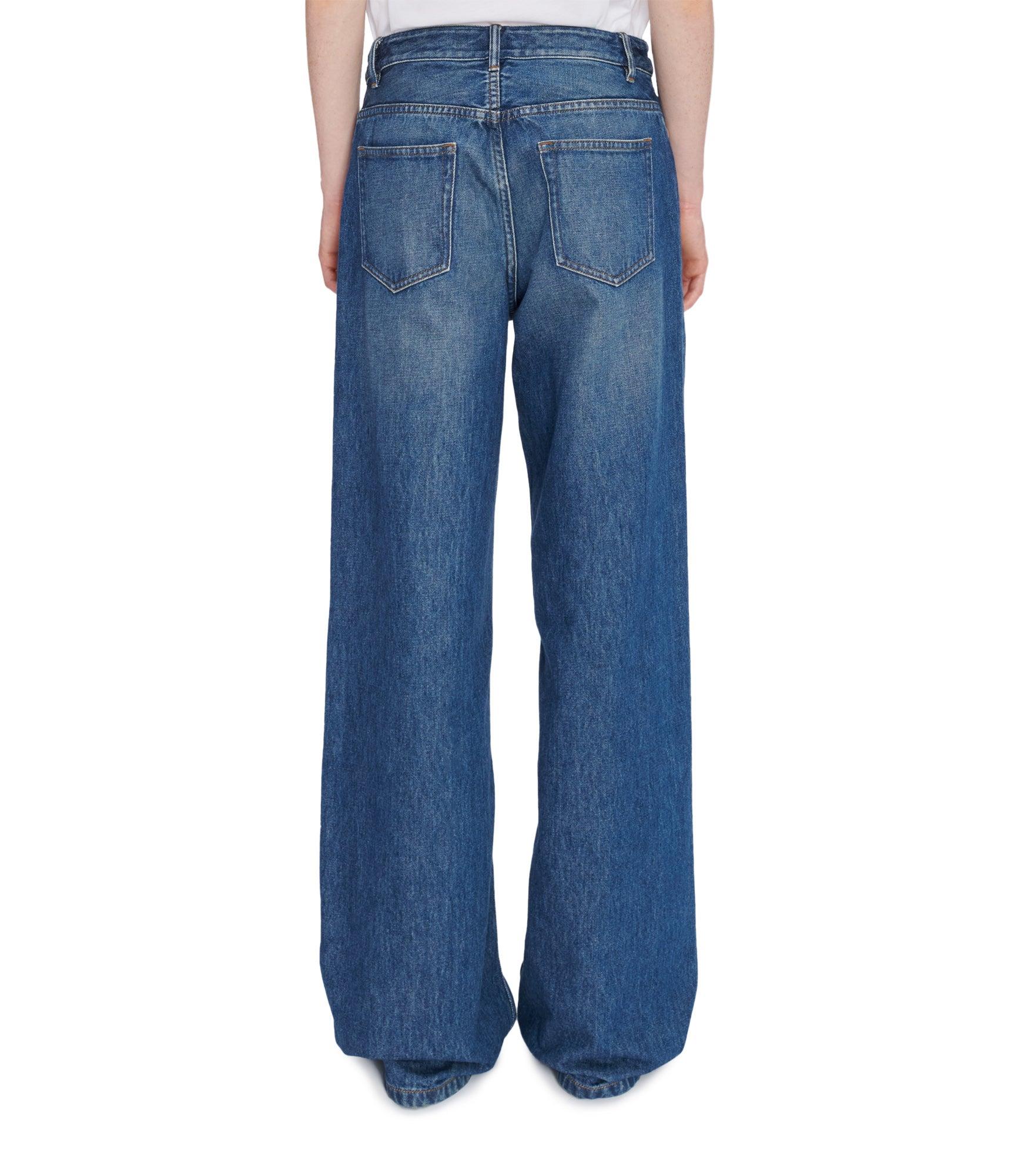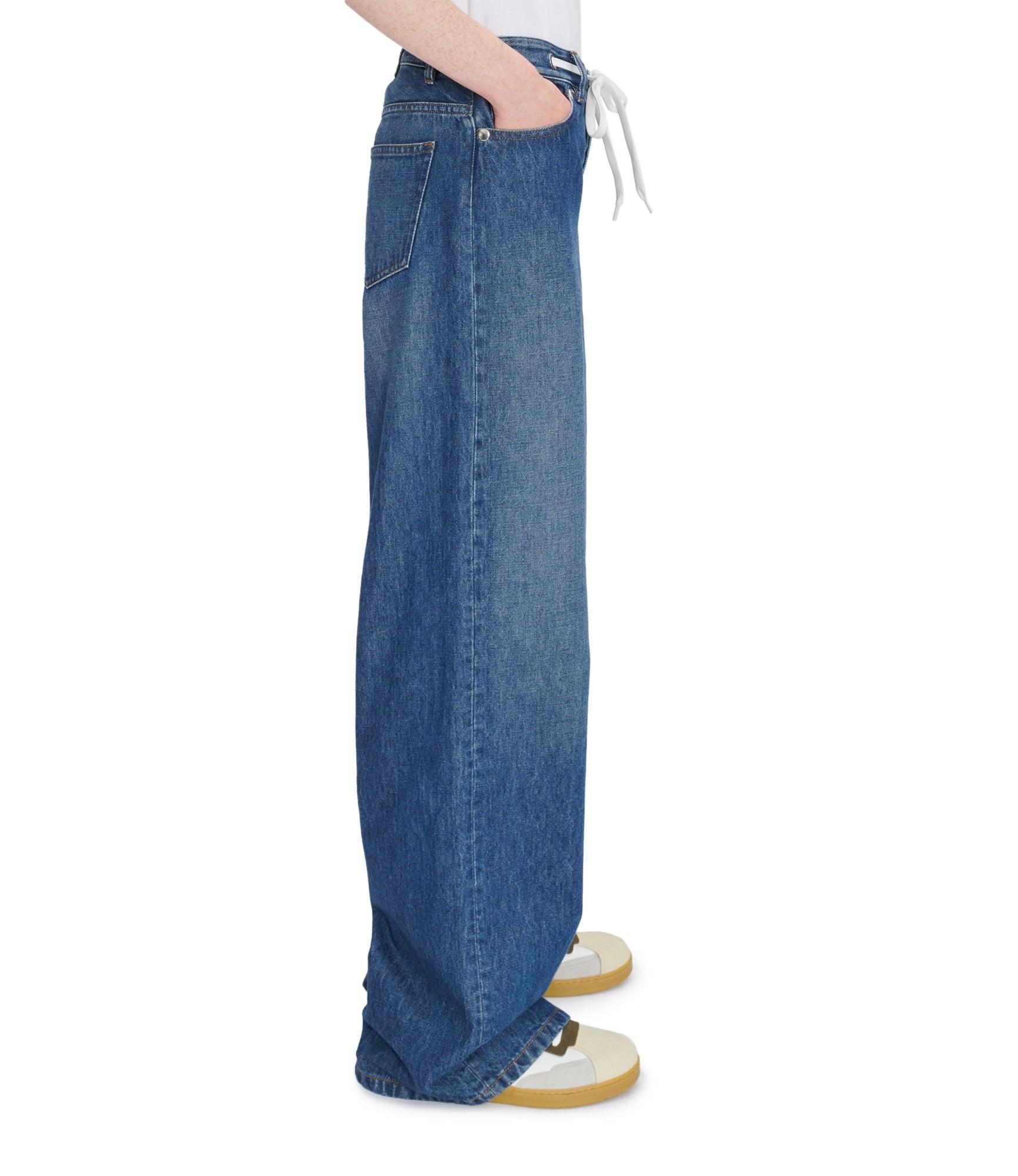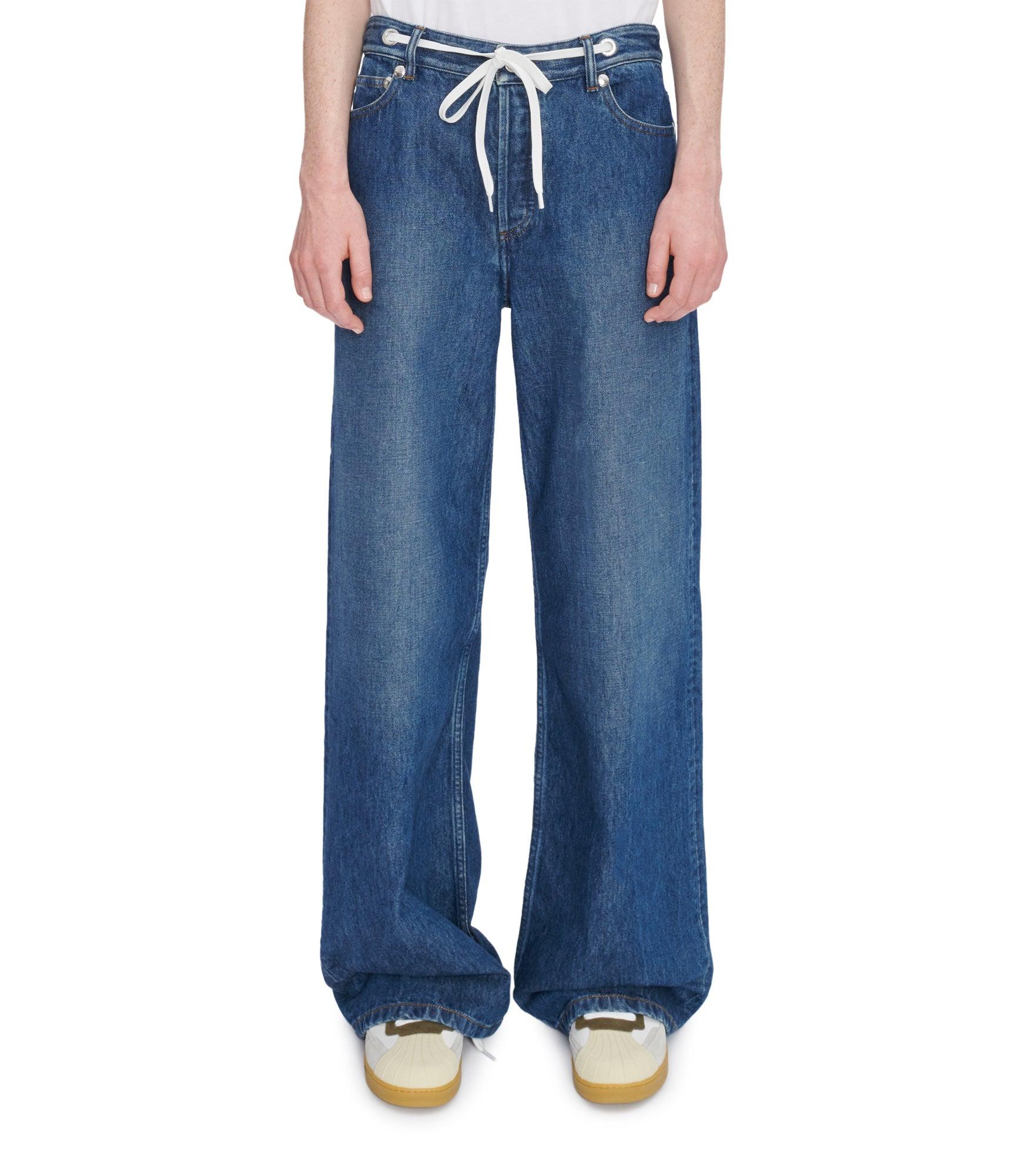 - Straight cut. - High rise. - Flared leg. - Drawstring extends from two silvertone metal eyelets at the waist in front. - Silvertone metal rivets, the signature of the line. - Stonewashed effect, like that of A.P.C. 'Butler' jeans. - Caramel and blue topstitching. - 100% cotton derived from organic farming.
