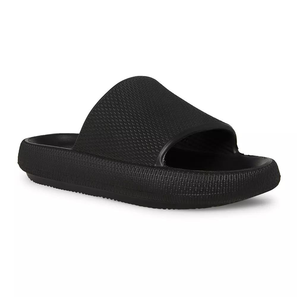 Step into comfort and style with these Madden Jumpin mens sandals. Click this FOOTWEAR GUIDE to find the perfect fit and more! Step into comfort and style with these Madden Jumpin mens sandals. Click this FOOTWEAR GUIDE to find the perfect fit and more! FEATURES Slip-on for easy on and off Water-repellent designDETAILS Rubber upper, midsole & outsole Round toe Slip-on EVA footbed Spot clean Imported Size: 9. Color: Black. Gender: male. Age Group: adult. Material: Synthetic.