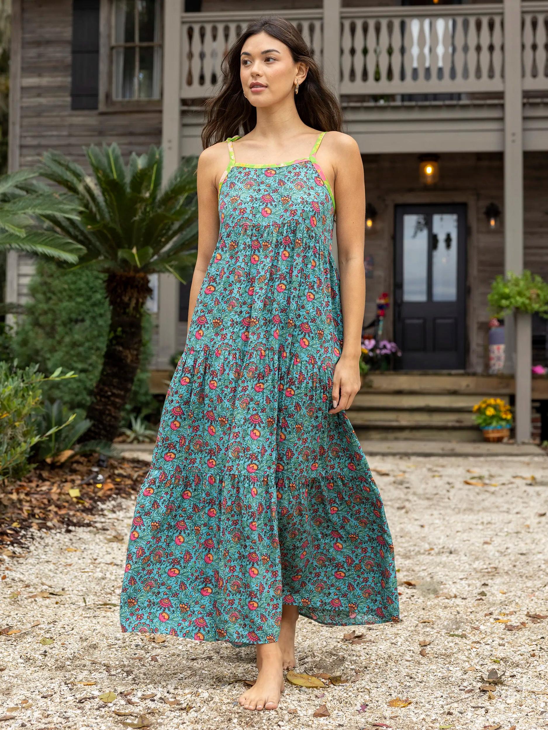 Maddie Maxi Dress - Turquoise Pink Fan Floral