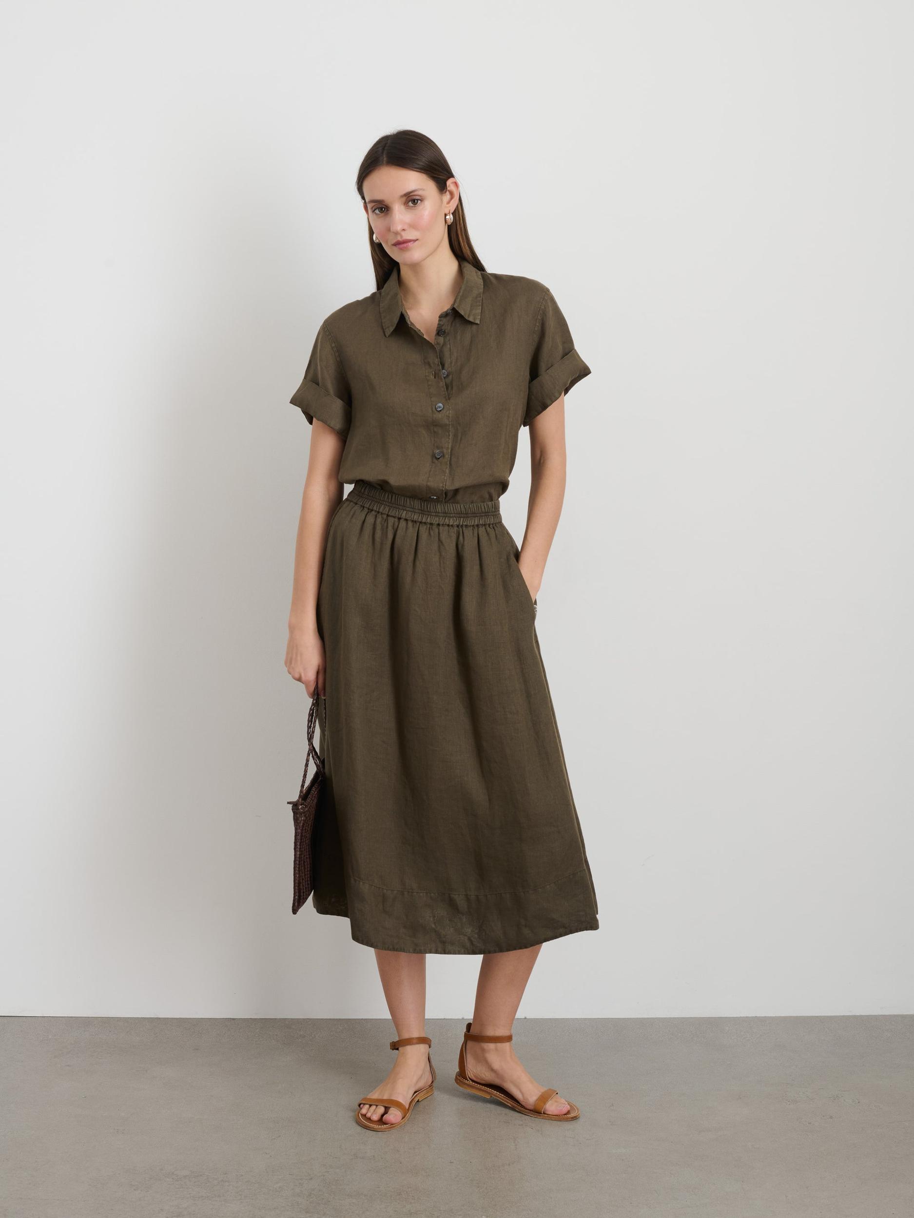 A skirt that has iPhone-sized pockets? Count us in. Fit: Fitted at the waist with a slight flare. Details we love: Made from 100% linen, garment-dyed for super vibrant color. Fact we love: On seam pockets are way less bulky than other kinds. Flattering and functional. True to size. Fred is 5'10" and wearing a size smal