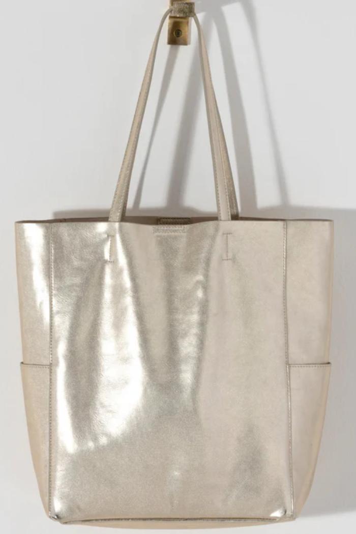 Make a statement with our Shiraleah Maddie Tote. This shiny accessory is sure to turn heads! Featuring double shoulder straps, a magnetic snap closure, two outer slip pockets, and one inner slip pocket. This tote has plenty of storage room!
