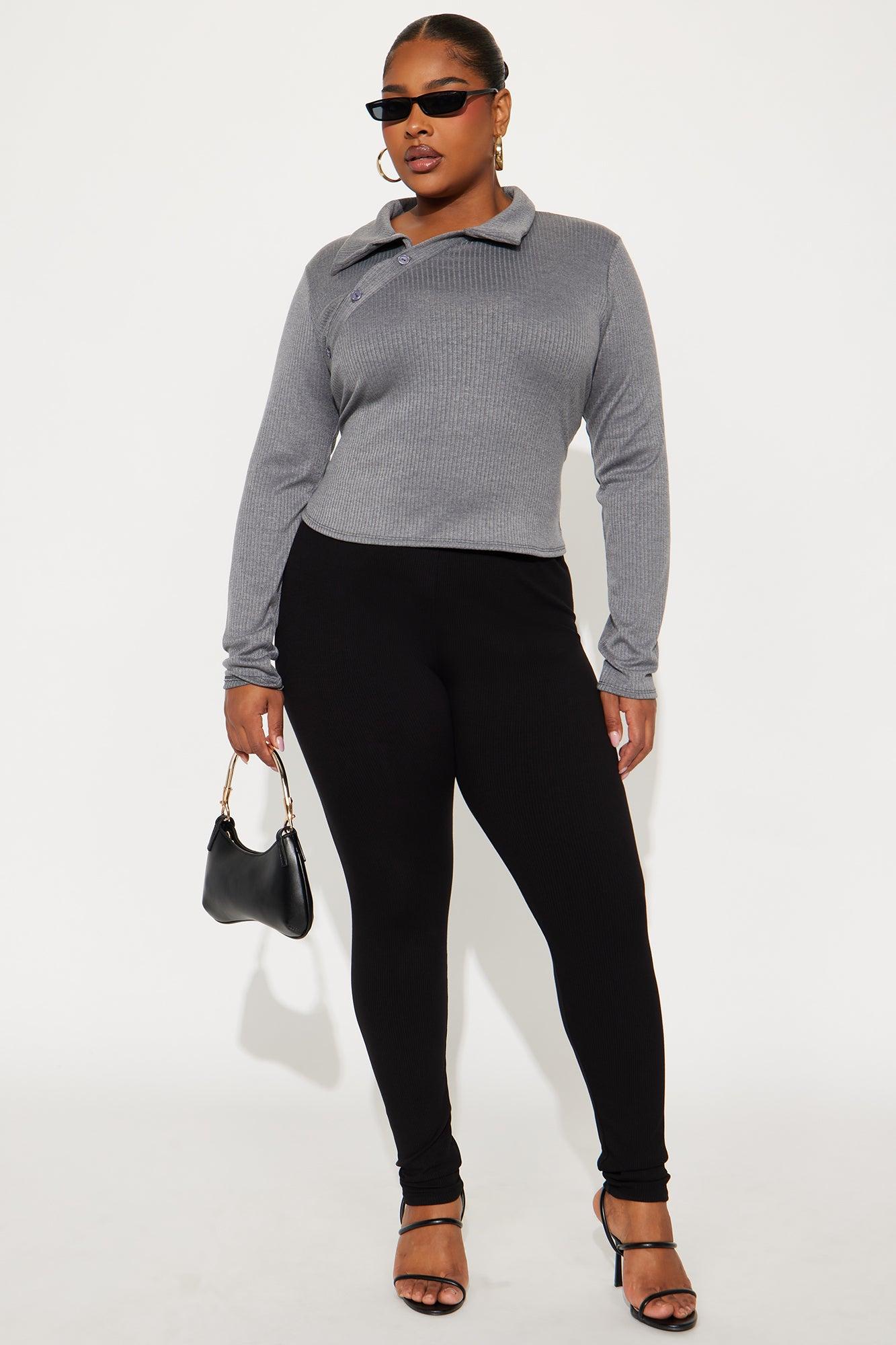 Maddy Button Up Ribbed Top - Grey Female