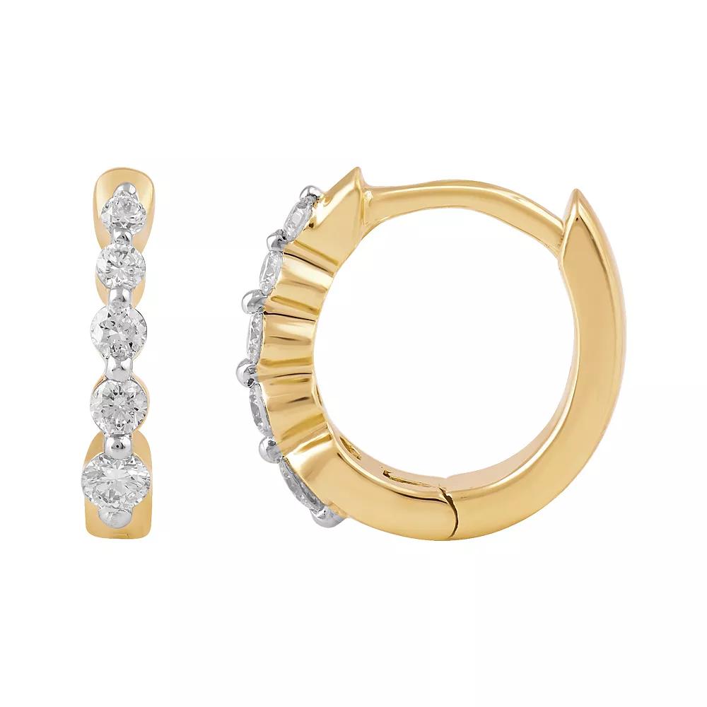 Decorated with dazzling, lab-grown diamonds, these gorgeous Made For You huggie hoop earrings are the perfect way to finish any outfit. BENEFITS OF LAB-GROWN DIAMONDS Offer essentially the same physical, chemical and optical properties as mined diamonds. Lab-grown diamonds are larger, and offer a higher quality than mined diamonds of the same price. Each stone is conflict-free. Metal: 10k gold Backings: huggie Packaging: boxed Finish: polished Length: 12.15 mmDIAMOND DETAILS Total weight: 1/5 ct. Color grade: H-I Clarity: I1-I2 Shape: round Setting: prong Gemstones may have been treated to enhance their appearance. Special care may be required. Please visit our Gemstone Treatment & Special Care Guide for more information. Image(s) may be enlarged to show detail. Please note, due to the high value of this item, a signature may be required upon delivery. Size: One Size. Color: White. Gender: female. Age Group: adult.