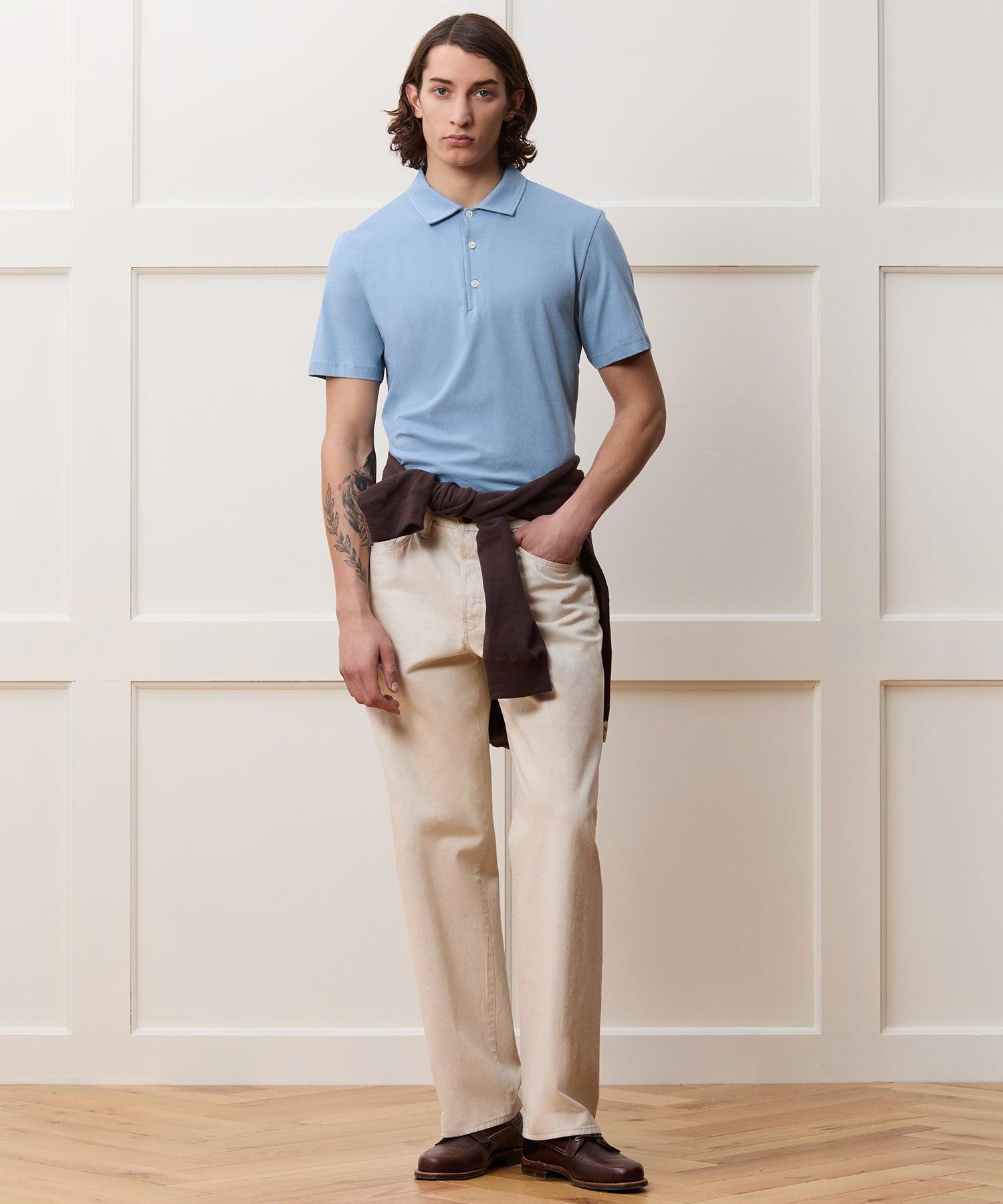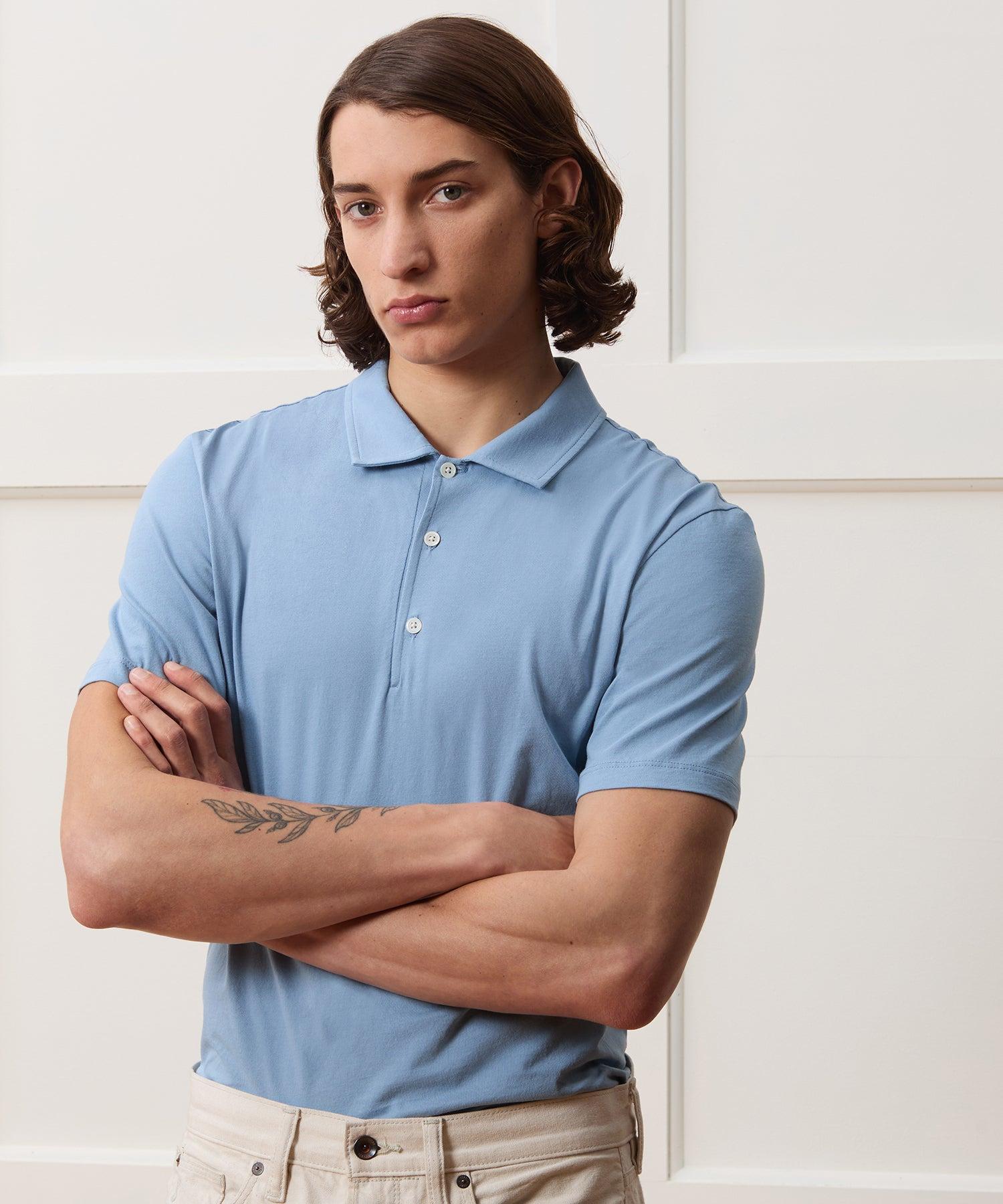Manufactured in a legendary Los Angeles factory, this clean, classic polo is a year-round staple. It’s crafted from an all-cotton fabric we call “Premium Jersey.” Named for largest of the Channel Islands, Jersey is both solid and opaque but also soft and breathable — its structure gives it good drape and makes for an excellent base layer. Ours is made from combed cotton, which is softer than conventional cotton (and less prone to pilling). It has a smooth, fine handfeel, the right amount of stretch and is reactive garment-dyed for rich, even color that won't fade. The ultimate basic, this polo is always down to smarten up a pair of jeans or get to work under a blazer. 100% Cotton Slim Fit Premium Jersey 3-Button Placket Split Side Seams Made in the USA Machine wash cold with like colors. Do not bleach. Tumble dry low, cool iron. Style KN4127991