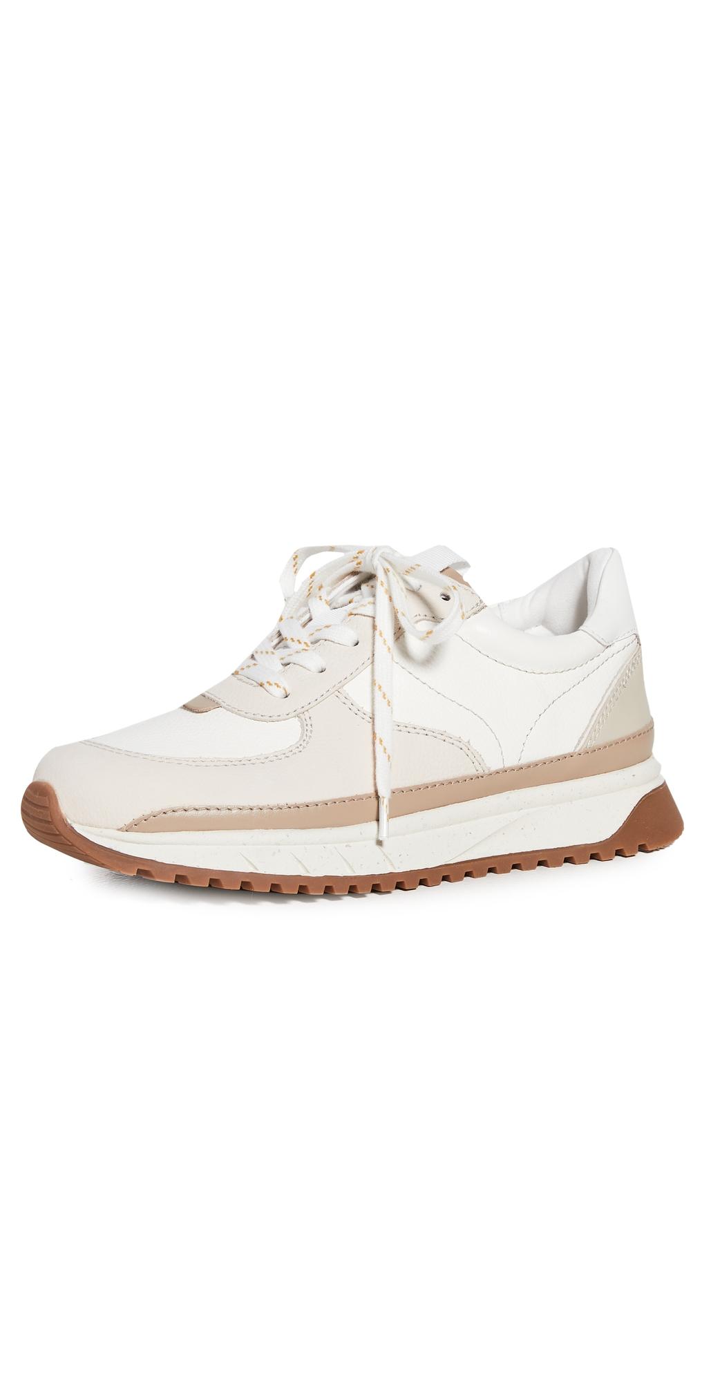 Get the weekend started in the sporty-chic Madewell Kickoff Trainer Sneakers in Neutral Colorblock Leather. The retro sneakers are crafted from mixed leather uppers and features a lace-up construction and a rounded-toe silhouette. Comfortably padded collar and tongue. Adjustable lace-up design. Textile lining and insole. Rubberized synthetic outsole. Imported.