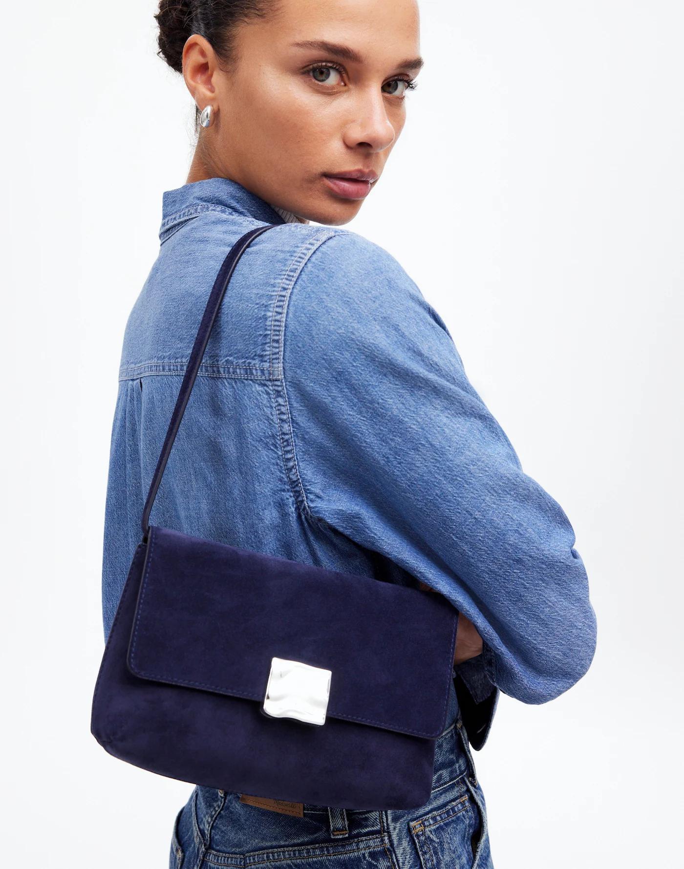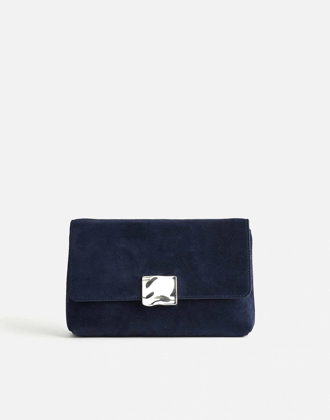 We partnered with NY-based jewelry designer Morgan Lang on this limited-edition collaboration featuring sculpted hardware inspired by urban landscapes, architecture and modern art. Coming in a luxe Italian suede, this shoulder bag features an organic metal statement closure. Plus, it's a two-for-one: the adjustable crossbody strap can be detached to convert it into a chic clutch.