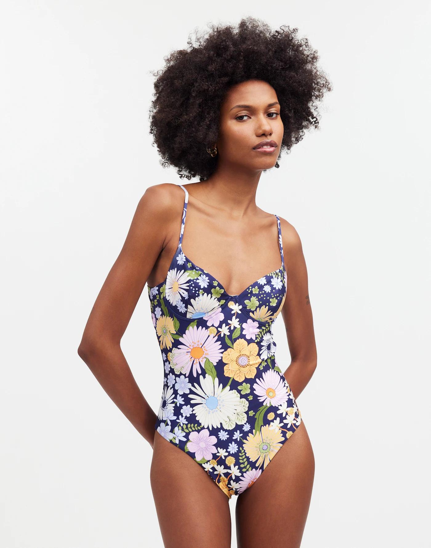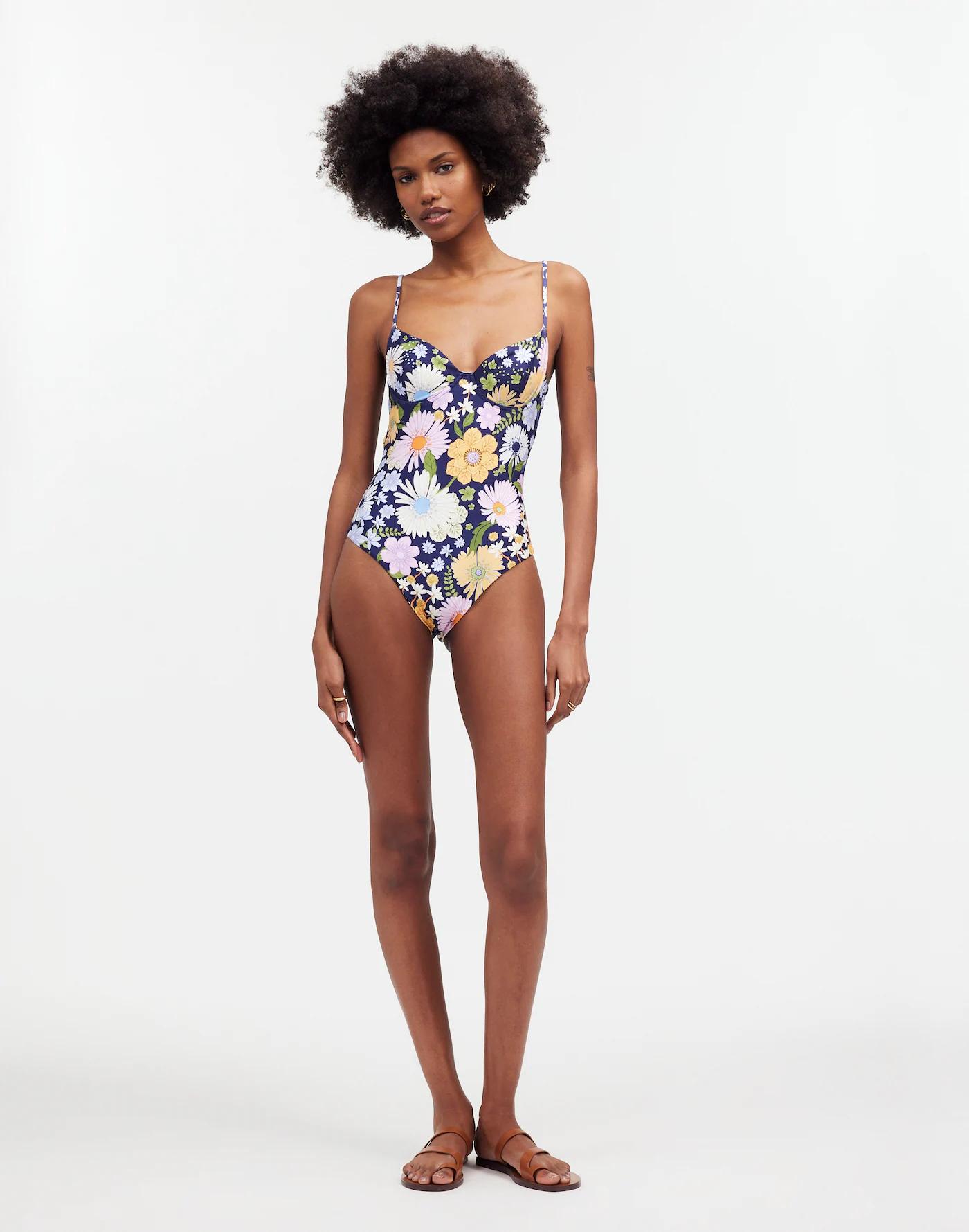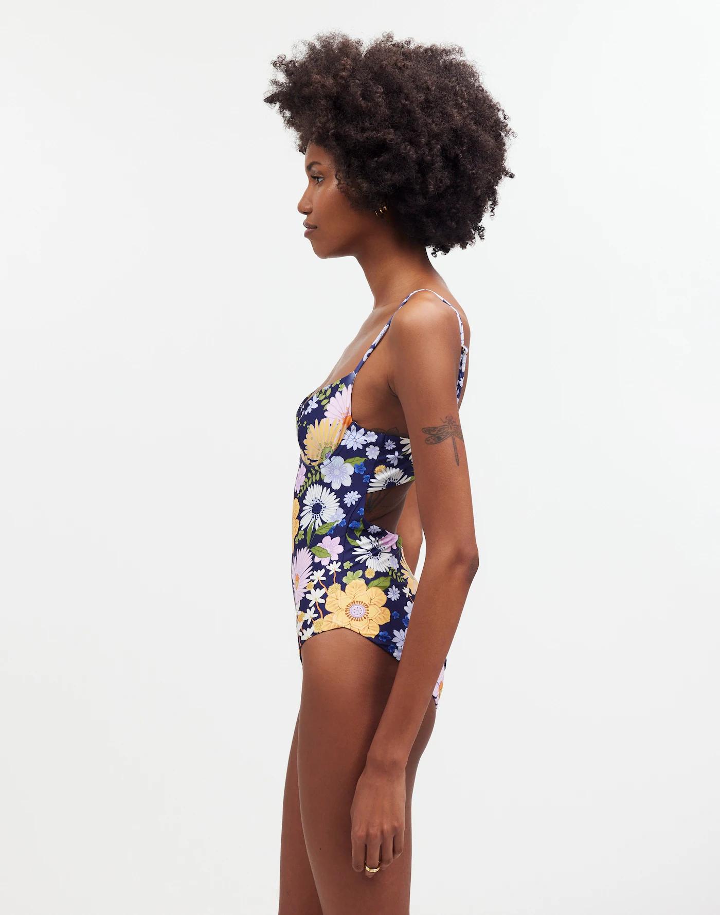 We teamed up with Colombian swimwear brand Agua by Agua Bendita on an exclusive capsule featuring their colorful prints and thoughtful designs. Coming in a vibrant floral print, this one-piece swimsuit has a sexy sweetheart neckline and is cut high on the leg.