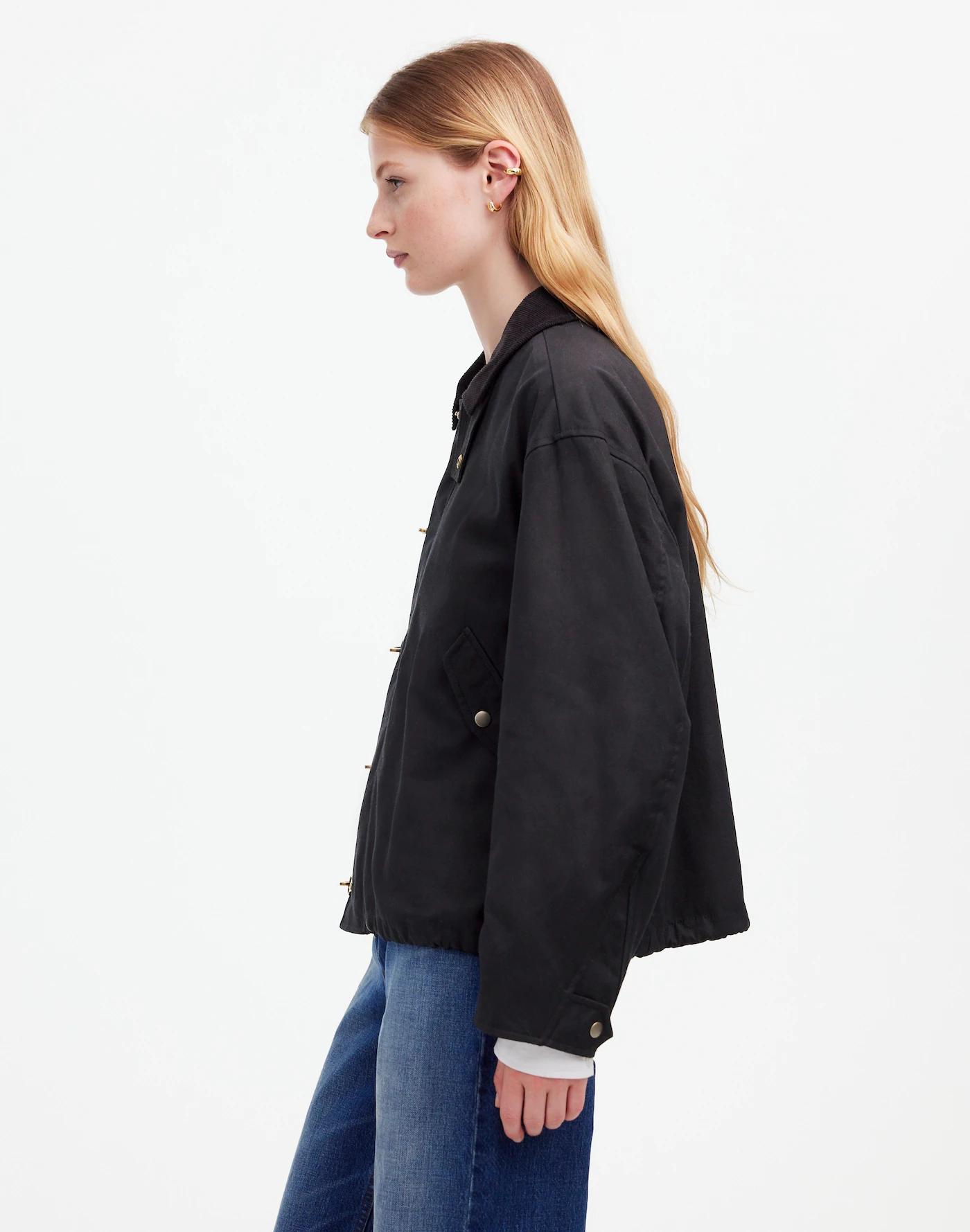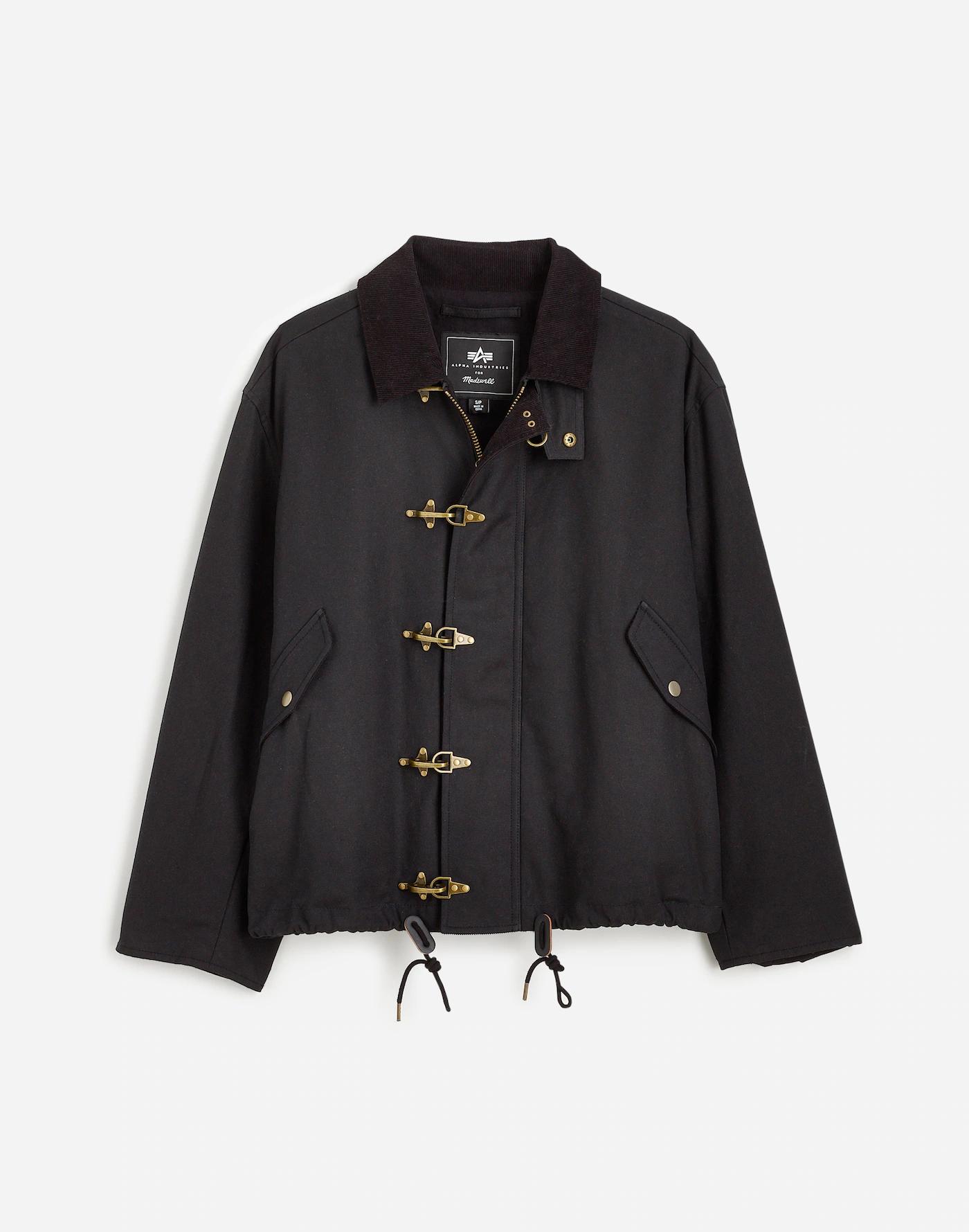 Famed heritage brand Alpha Industries brings us an exclusive collection of modern utilitarian outerwear, like this car coat made of water-resistant waxed cotton that's flannel-lined for extra warmth. Designed with a fold-down corduroy collar and antiqued hardware.