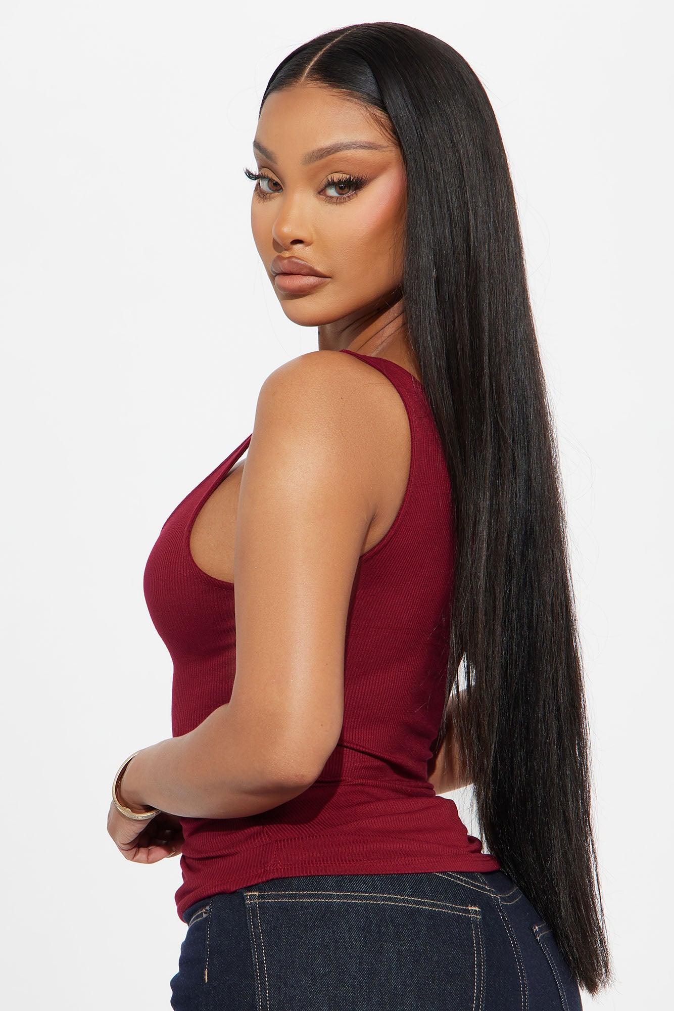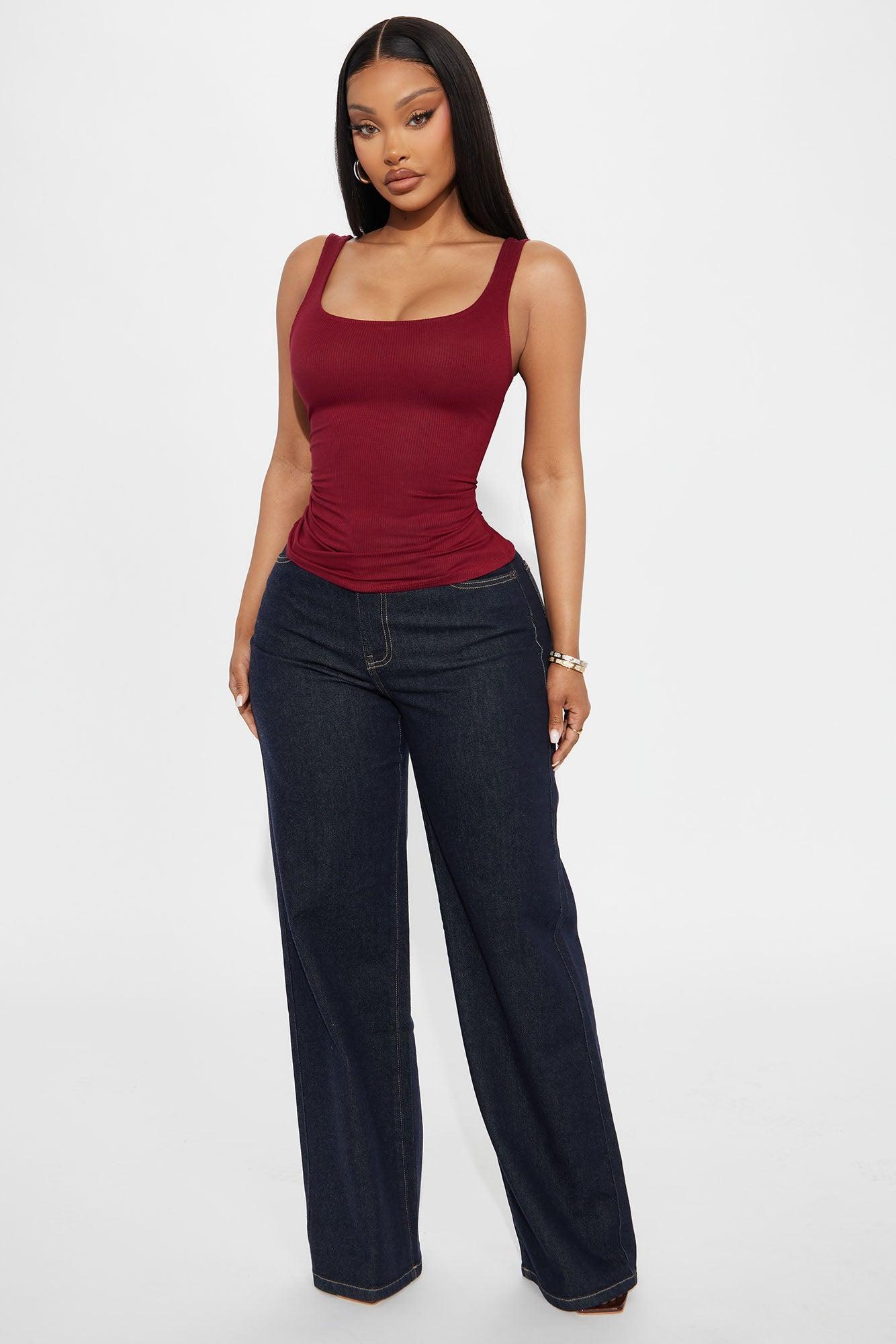 Madison Basic Square Neck Tank Top - Burgundy Female