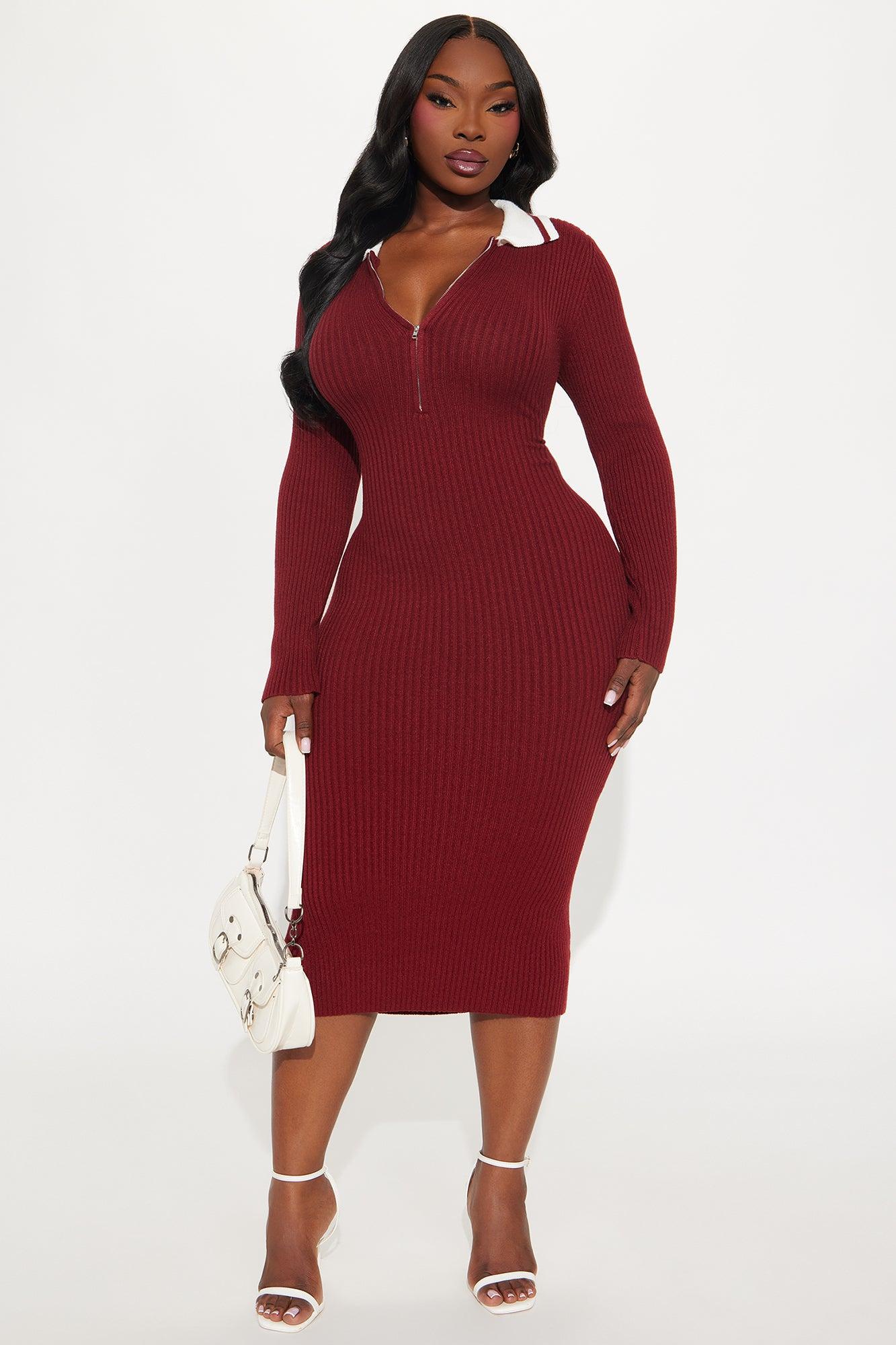 Madison Zip Up Sweater Midi Dress - Wine Female