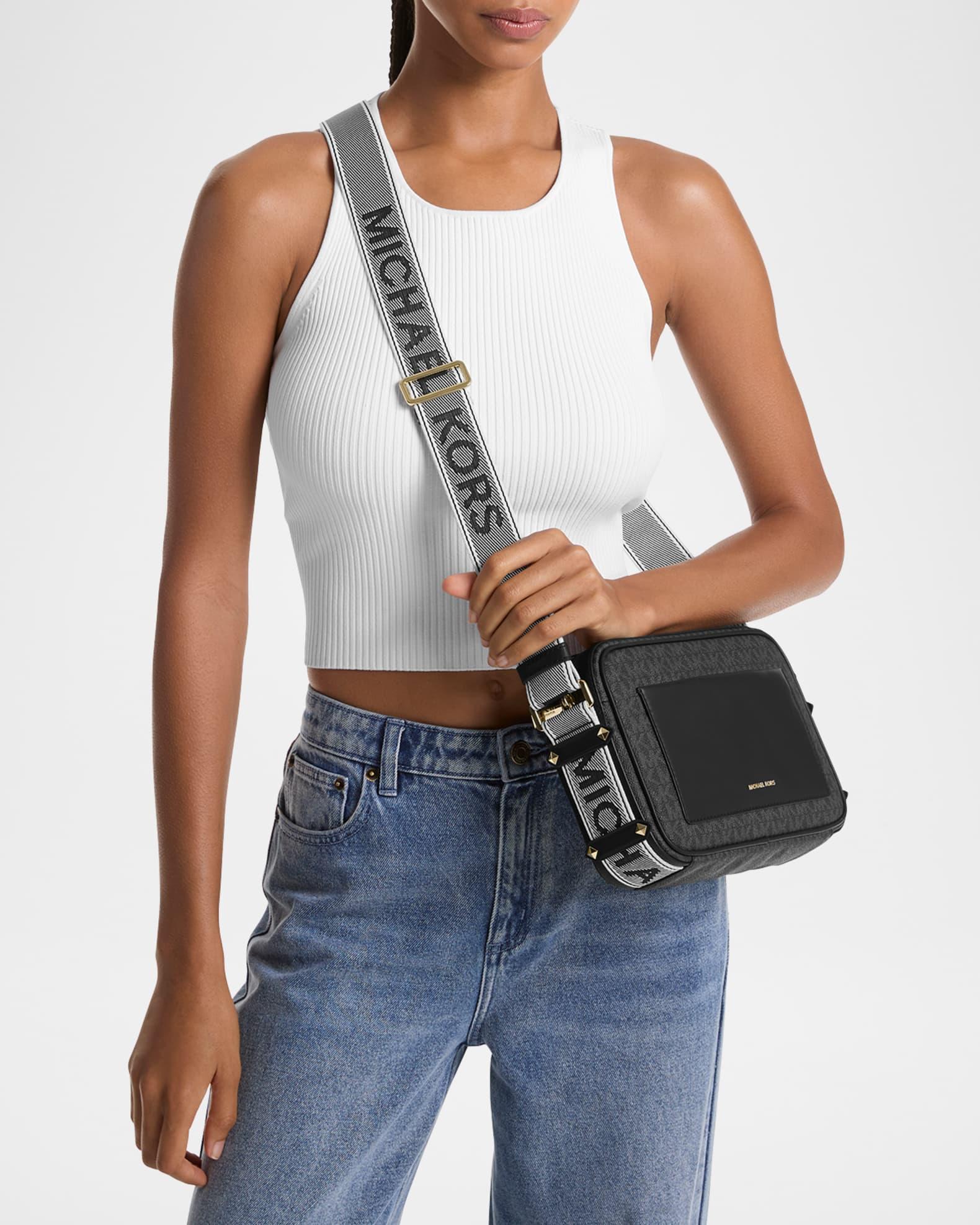 MICHAEL Michael Kors "Maeve" east-west crossbody bag in monogram fabric Adjustable logo web crossbody strap Zip top closure Exterior, two slip pockets Interior, one slip pocket Lining: Polyester Approx. 6.8"H x 10.8"W x 4.3"D PVC/polyester/polyurethane Imported