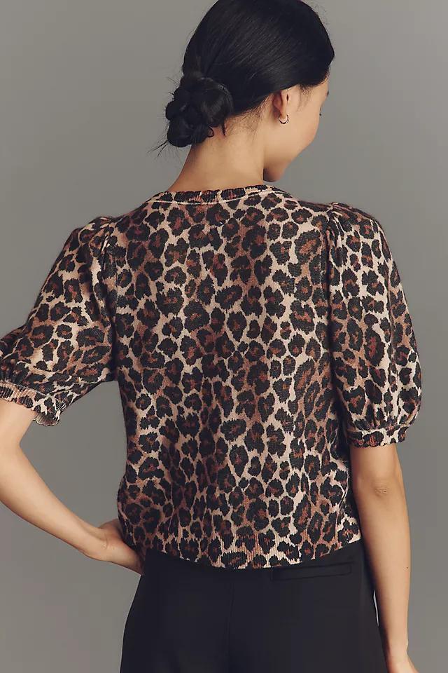 Maeve Puff-Sleeve Cashmere Cardigan Sweater