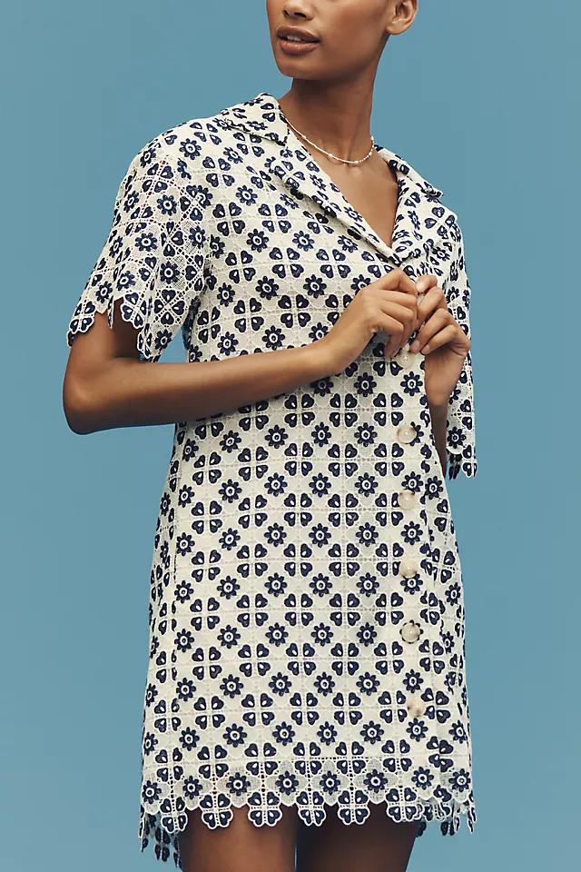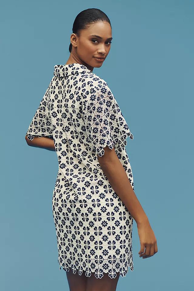 Maeve Short-Sleeve Geo Lace Mini Shirt Dress