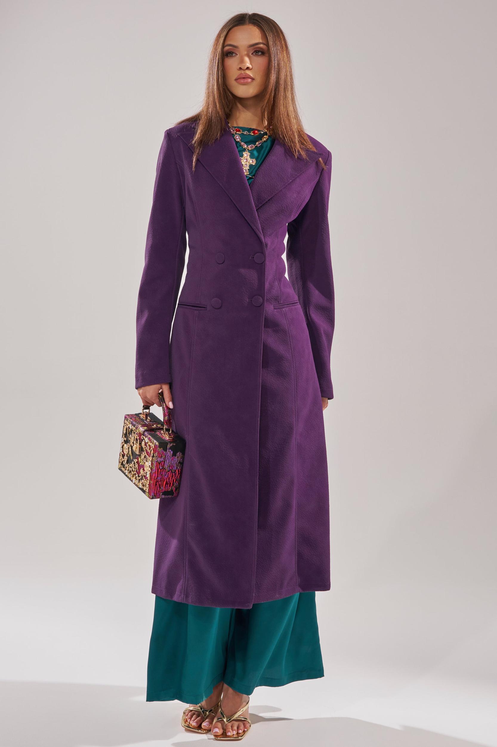 The AKIRA Label Maeve Suede Feel Trench is fall’s softest power move. Crafted from buttery smooth faux leather, this longline jacket boasts a notched lapel collar, lightly padded shoulders, long sleeves, dual waist pockets, a back vent slit, and a satin inner lining. Complete with a double-breasted button front closure. Throw over turtlenecks or chunky knit sweaters for effortless style. - Fabric: 60% PU 40% Polyester- Spot Clean Only- No Stretch- Imported (all measurements approximate from size small)- 49.5” Shoulder to Hem- 16” Shoulder to Shoulder- 26” SleevesProduct ID: 1069178 (all measurements approximate from size 1X)- 51.5” Shoulder to Hem- 19” Shoulder to Shoulder- 27” SleevesProduct ID: 1069182